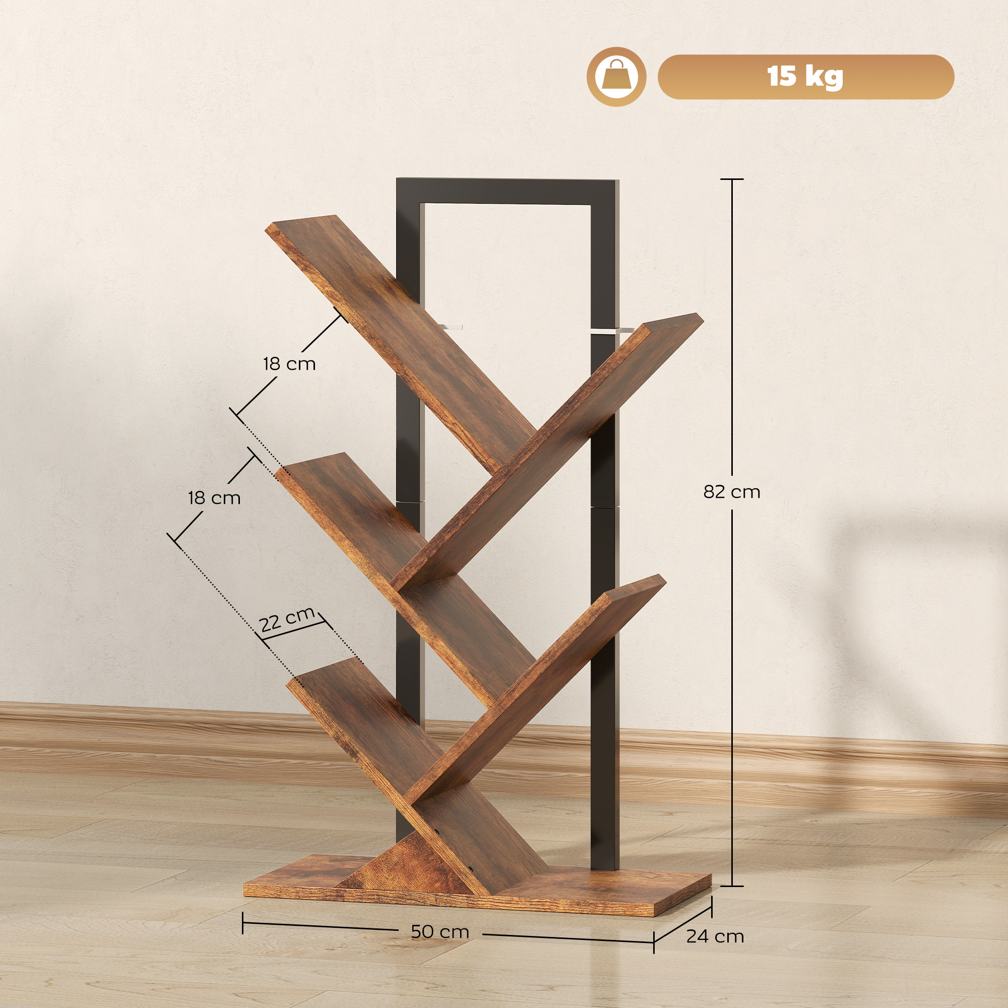 The unique way to hold your book collection together - this HOMCOM tree bookshelf. It is formed of four sections for holding books, magazines and more - holding plenty of your media in a single spot. With a steel frame for a strong core, the body is made from robust particle board - finished in a beautiful wood-effect.