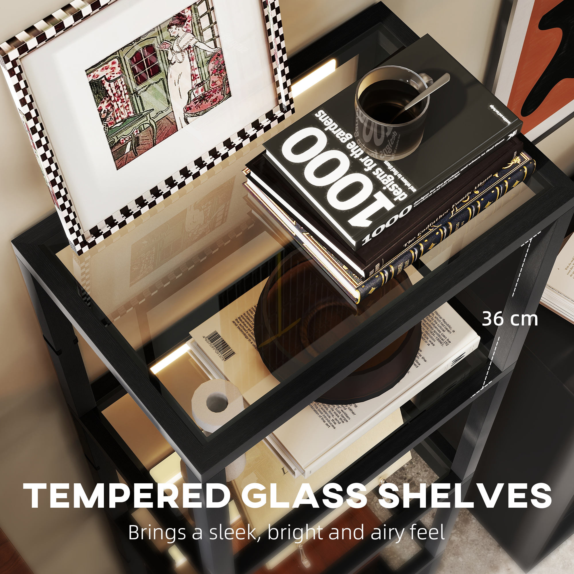 Merging together warm ambience and handy storage, with this HOMCOM floor lamp light. Fitted with four warm white LEDs, which adjust between three levels - set the ambience you want. It has four shelves - storage to keep your favourite pieces on show. The tempered glass shelves are sleek and allow the light to pass through from top to bottom.