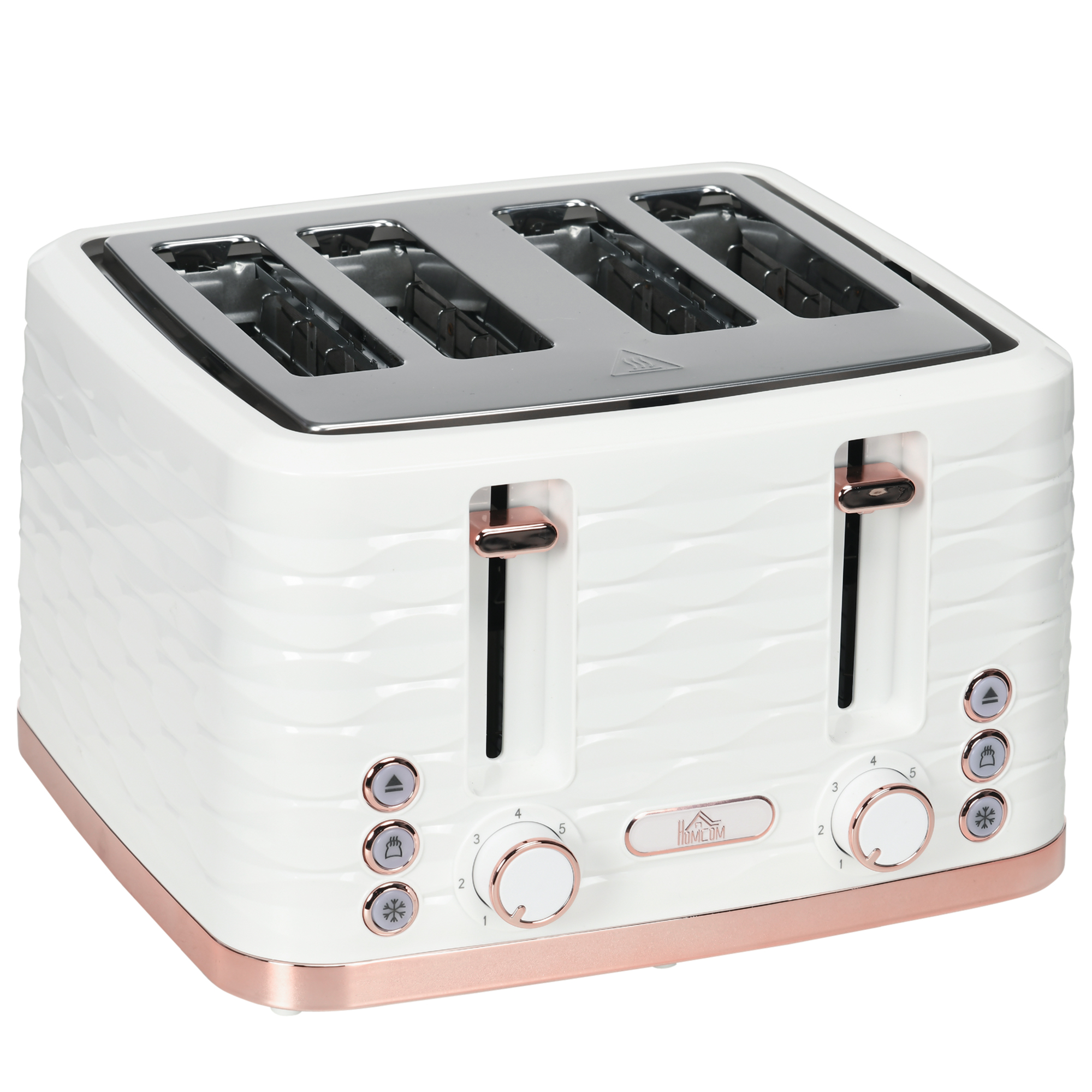Wake up to delicious toast, in modern style - thanks to this HOMCOM four slice toaster. It comes in a ripple textured design - this is a piece you'll love having as part of your countertop. Seven toasting levels means you can have your toast as brown and crispy as you want, with automatic centring for an even result every time. The automatic shut-off means no stuck, and burnt toast, complete with a removable comb tray for easy cleaning.