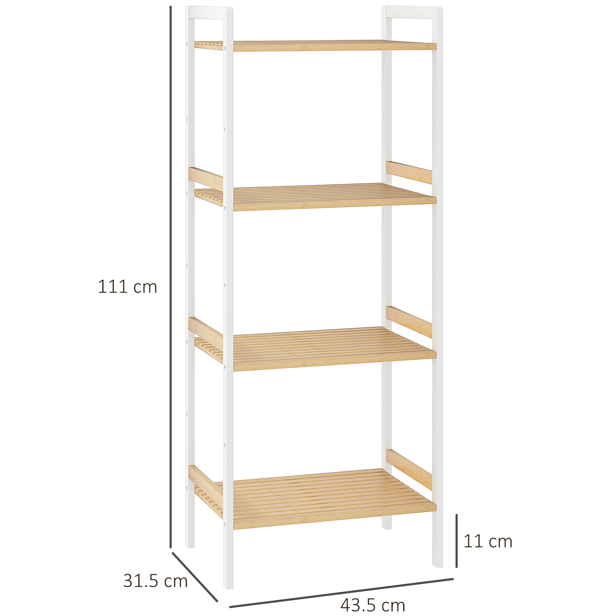 This HOMCOM bathroom shelf unit is a simple and spacious piece, for keeping all essentials in one spot. Made from bamboo, it is naturally strong and moisture resistant. Comes with four shelves so there's plenty of storage; with seven available levels to set each shelf to a position of your choice.
