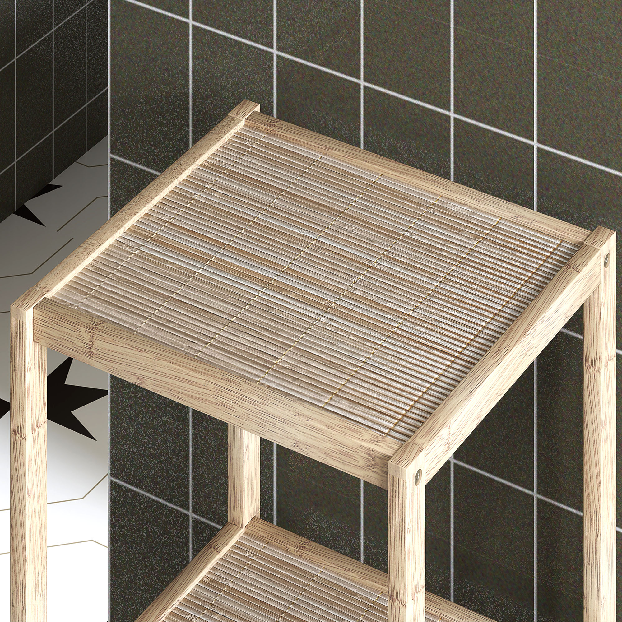 Easy, natural storage with this HOMCOM bathroom shelf. Made from bamboo for durability, with a varnish coating for protection; crafted into a four-tier design to offer plenty of storage. Comes with anti-tipping straps for safety and is securely attached to a wall.