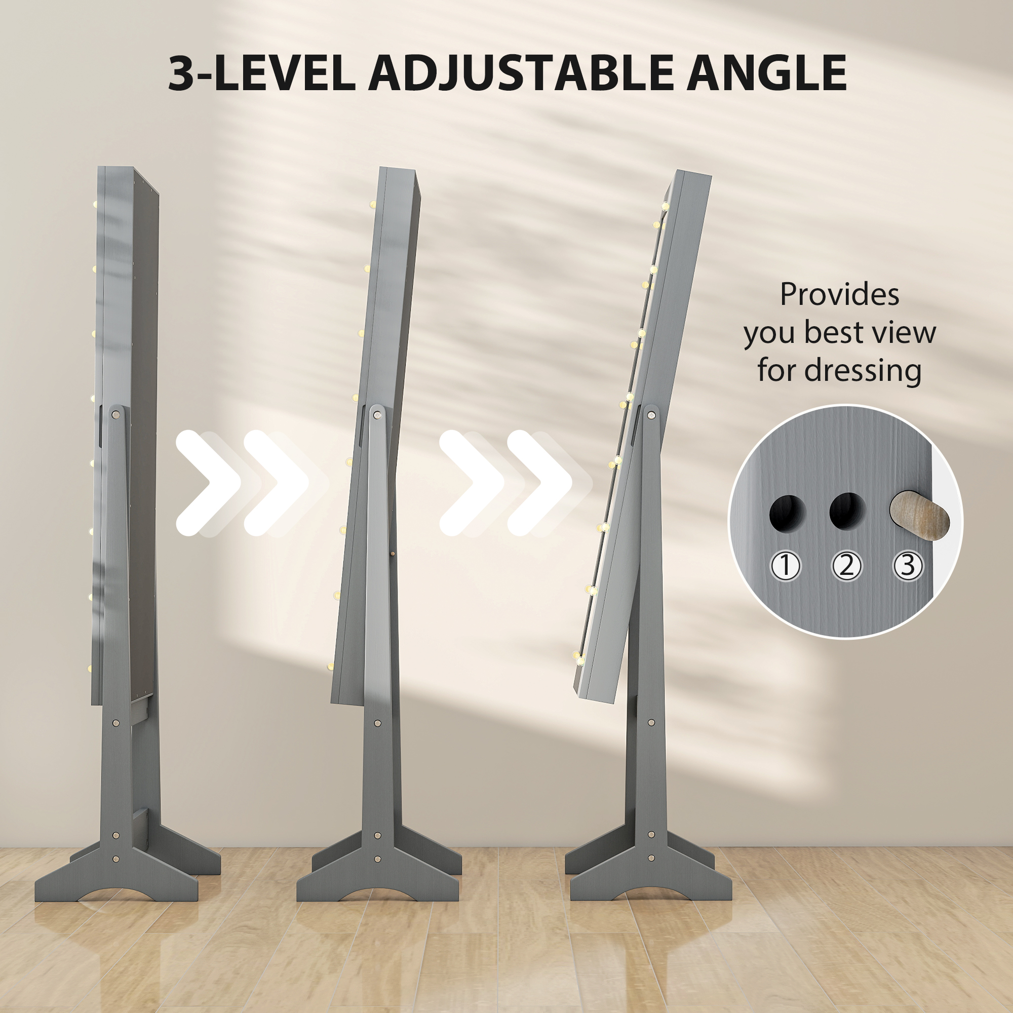 - Three different angles, to find the best position for you whilst getting ready