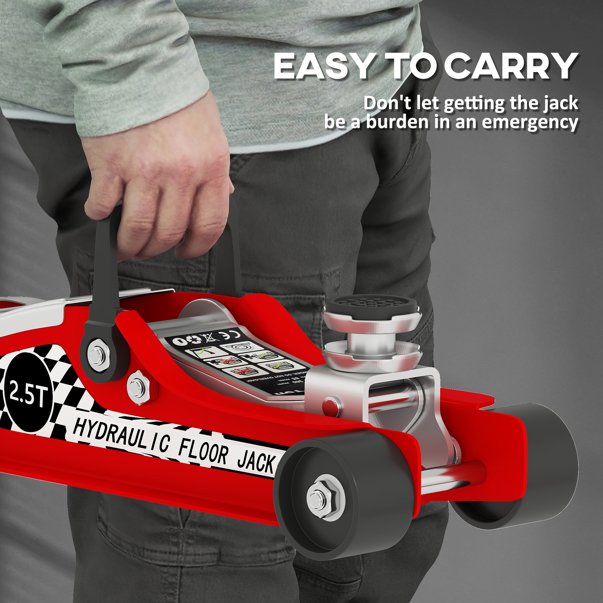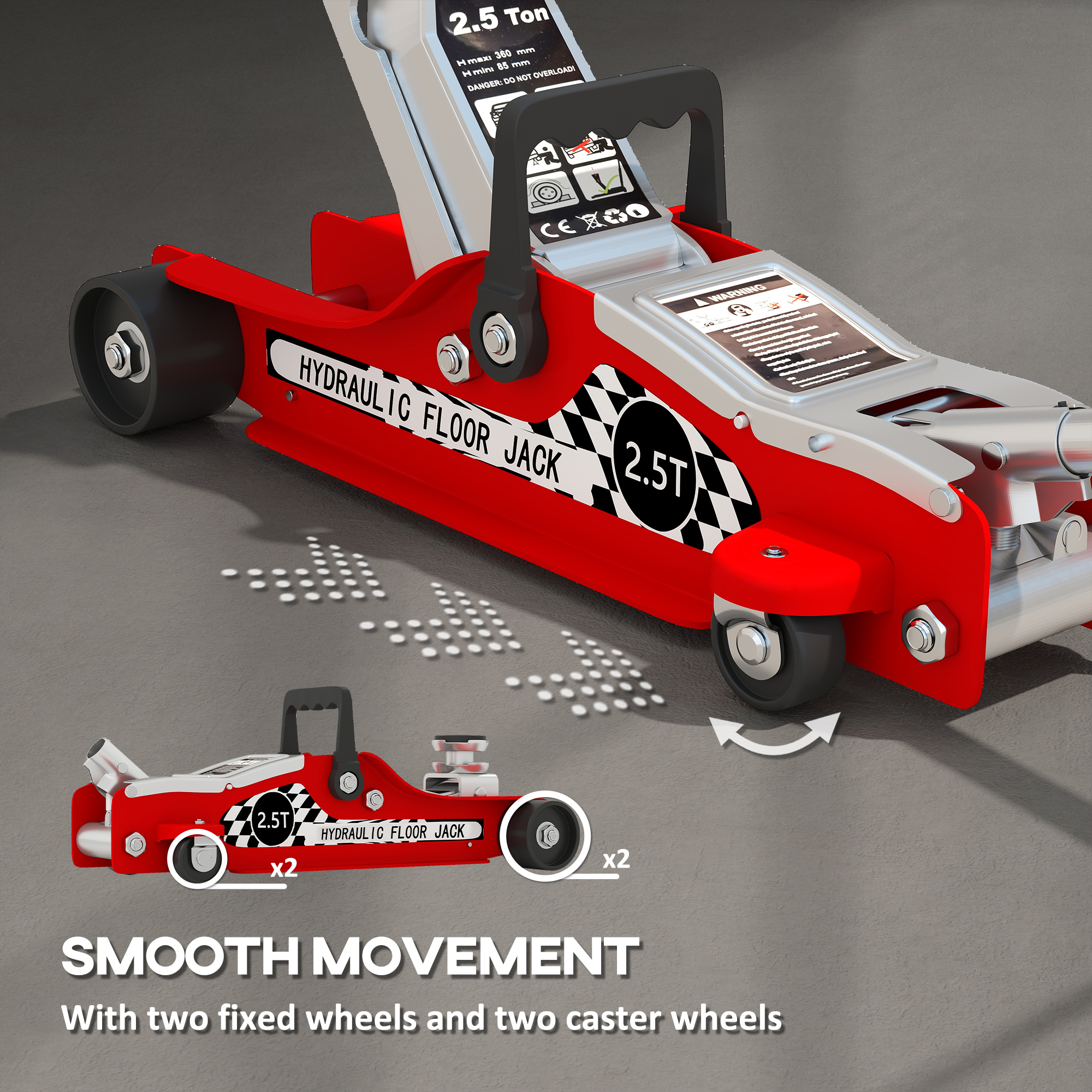 Elevate your car maintenance game with the HOMCOM low profile trolley jack. Designed for racing, standard cars, trucks, motorcycles, ATVs, lawnmowers, snowmobiles and more, this hydraulic jack boasts an 8-36 cm lifting range and a hefty 2.5-ton capacity. The robust steel and anti-rust coating ensure longevity and reliability. Ready to roll with fixed and caster wheels for easy manoeuvrability!