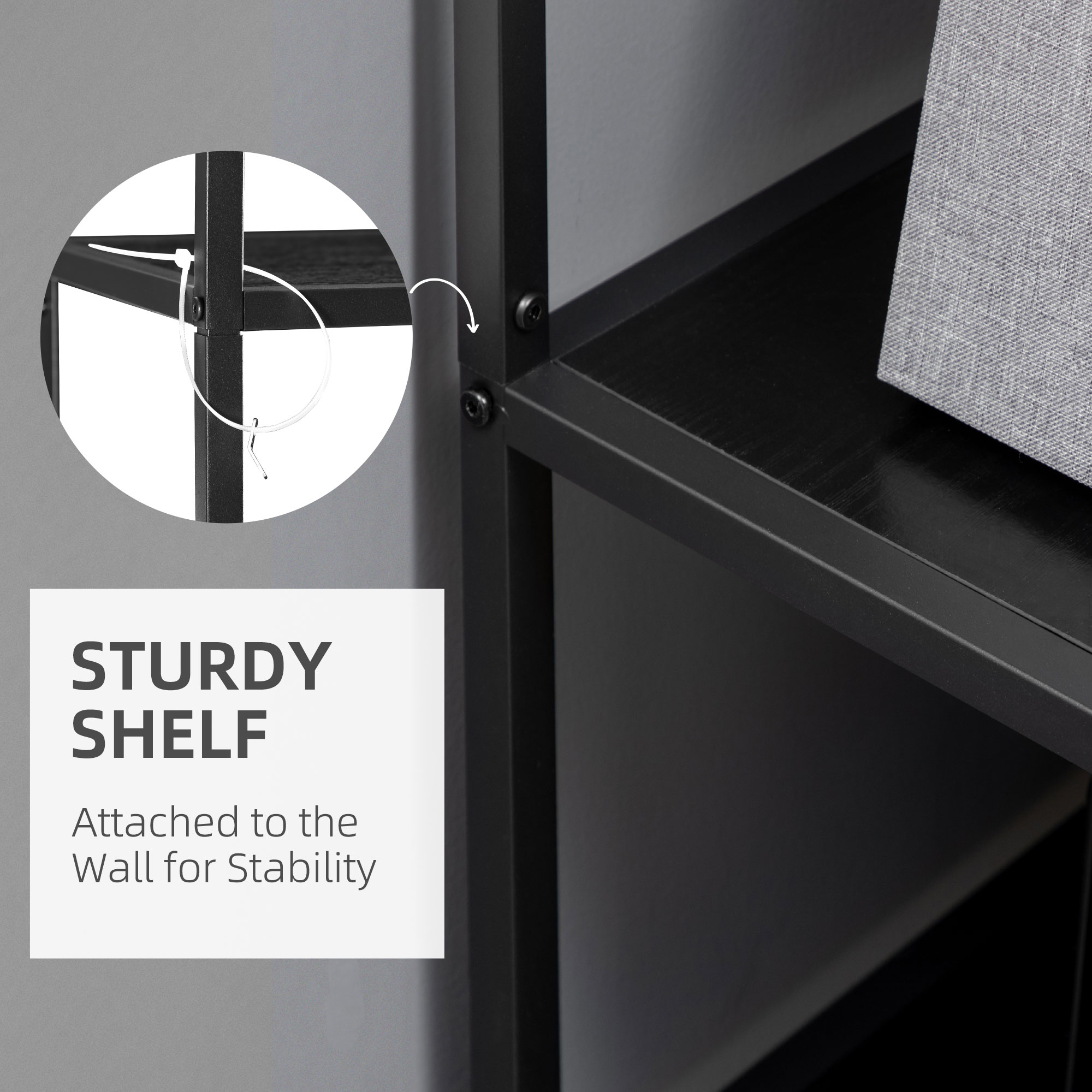Cool industrial style comes in spacious form: this HOMCOM garage shelving. Say hello to the black finish, paired with the black frame - a striking and characteristic design. Six shelves, some small and some large, offer plenty of space for decorations. A steel frame means a tough structure which supports all you have in place. Comes with anti-tipping straps to attach to wall.