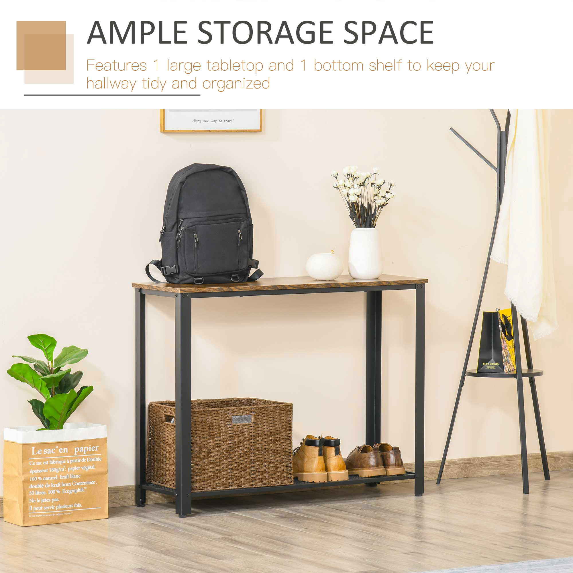 Both stylish and practical, this industrial-styled hallway table is a distinctive addition to your home which does more than just sit and look pretty. Made from metal, the rectangular frame ensures lasting reliability in your home, with it strong enough to handle up to 30kg. With a veneered MDF tabletop which is resistant to light, daily damage, the narrow console table is finished with four adjustable feet to ensure its balance at all times. A piece you’ll love for years to come.