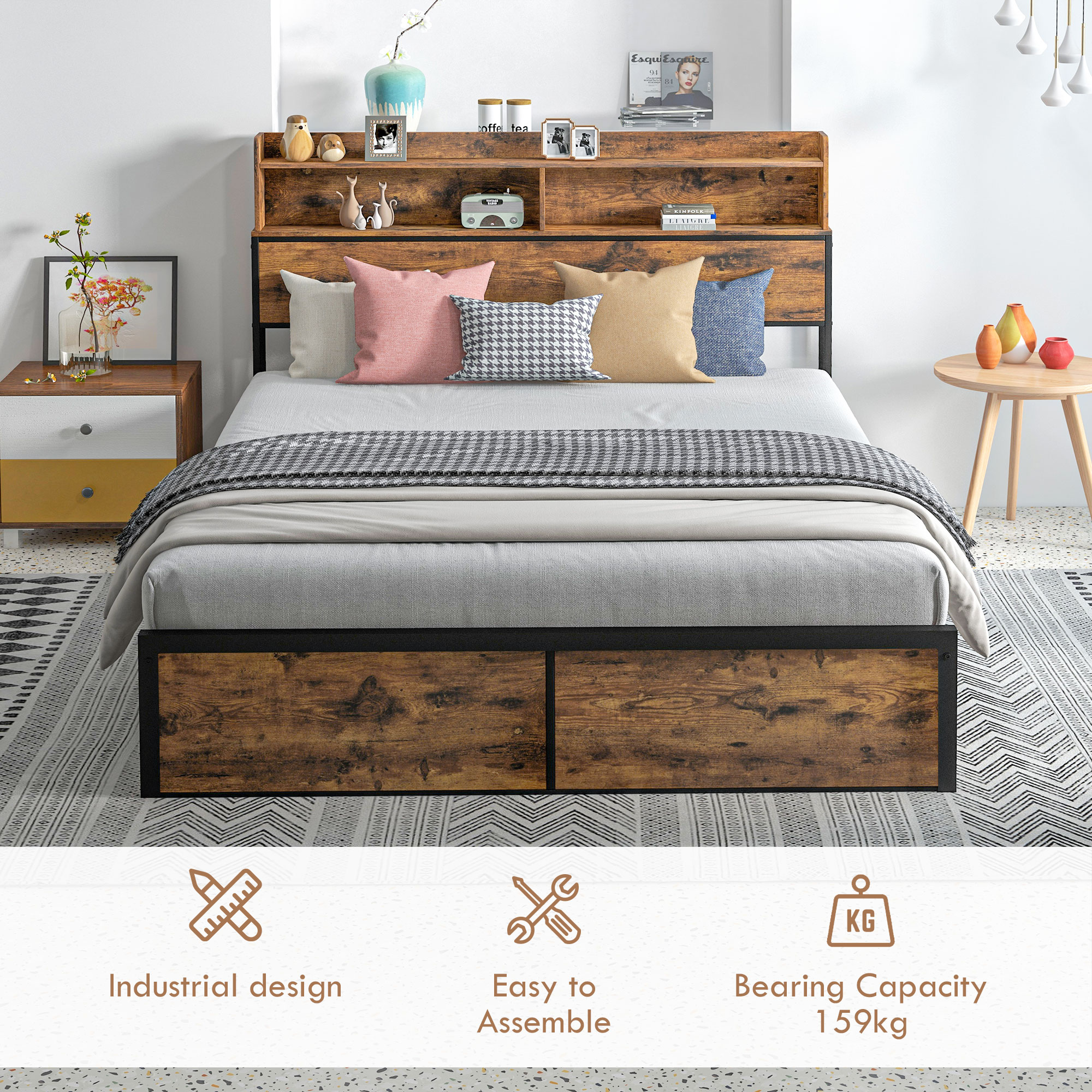 A retro touch for your dream times - this HOMCOM metal bed frame. A steel frame means you are supported, with 26.5cm underbed clearance giving discreet room for keeping items stored. It comes with a two-compartment headboard - room for keeping small essentials close to you. The king size makes it very spacious - plenty of room for sleeping and relaxing. With its industrial design, it's perfect for plenty of home styles!