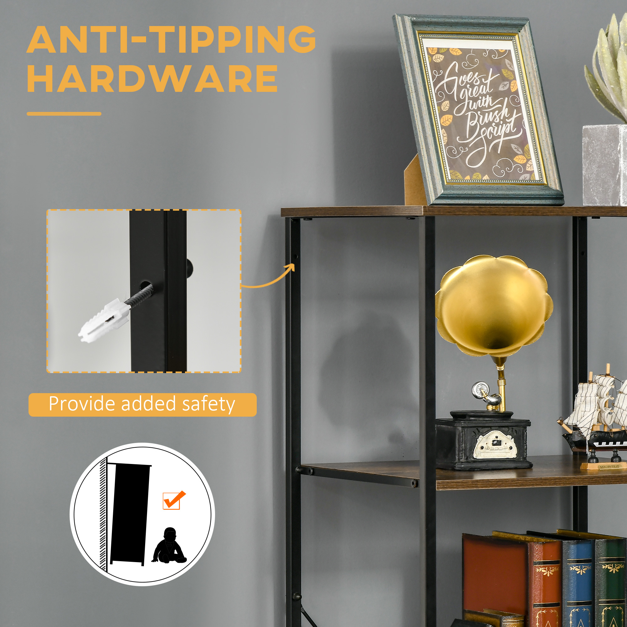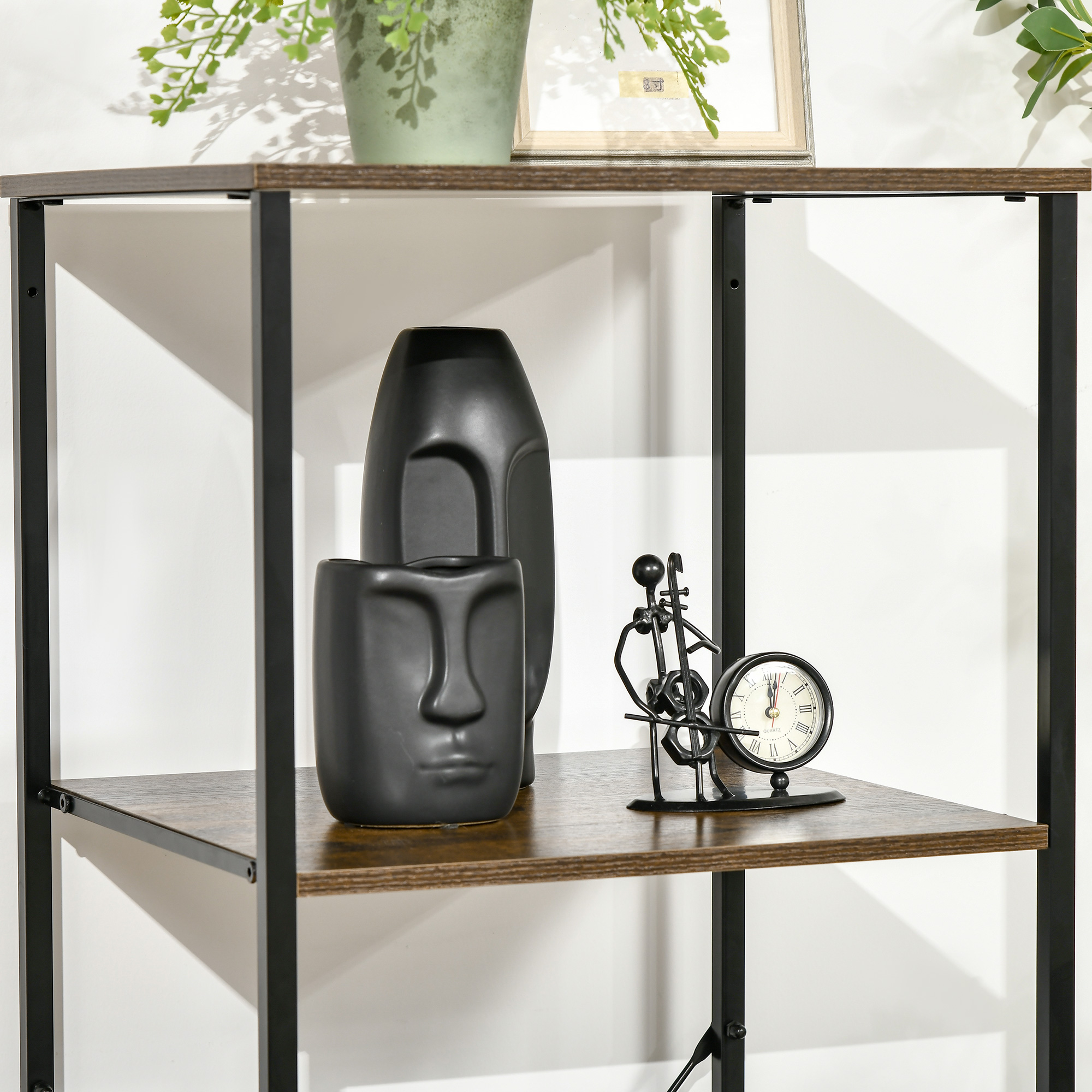 Maximise space the industrial way with this freestanding shelving unit from HOMCOM. It mixes three bottom drawers and two top shelves - keep clothes, personal belongings and papers discreetly stored, with space to show off your favourite bits. A steel frame for strength to fully support. The black frame combines with the wood-effect drawers for beautiful Industrial style. Complete with handy adjustable feet.