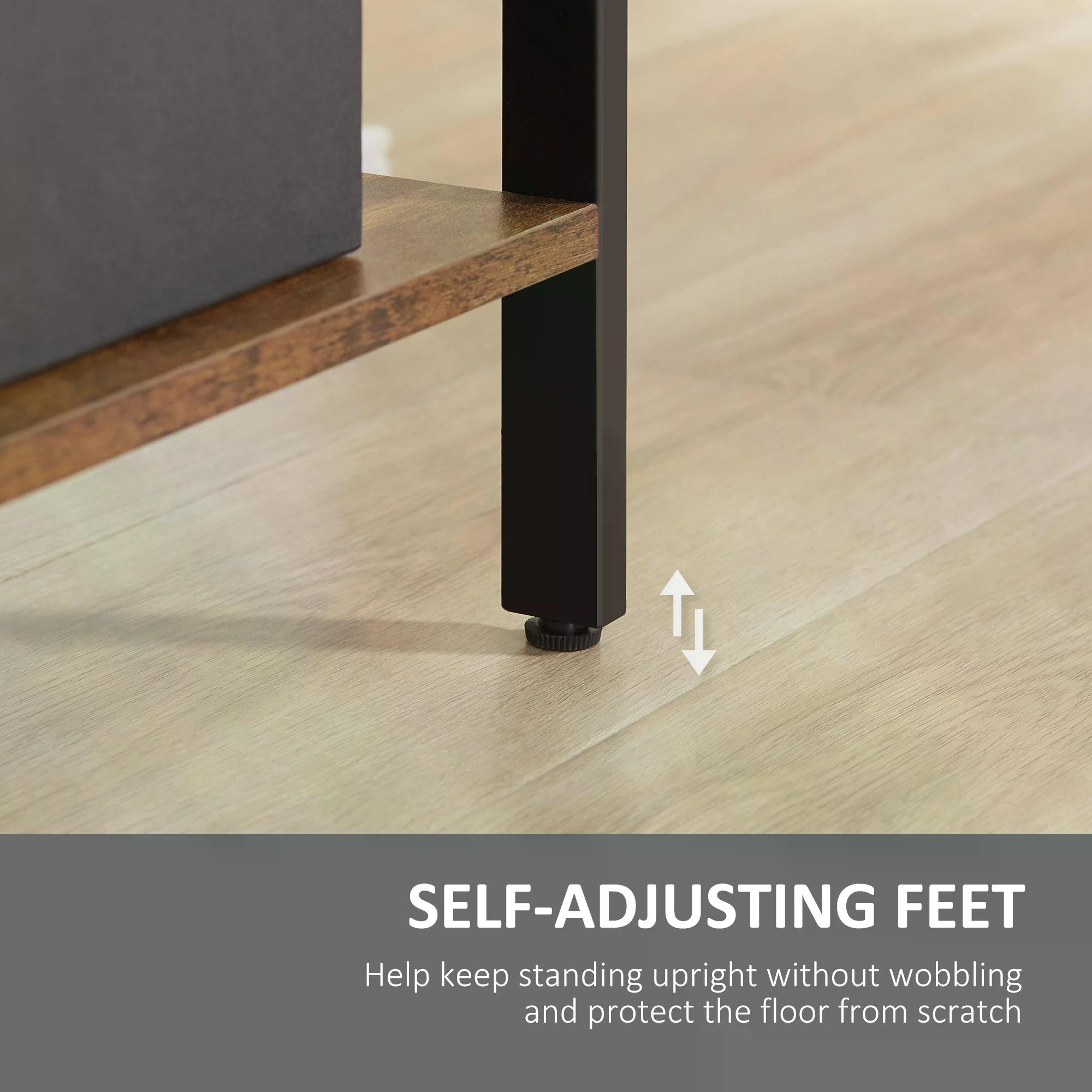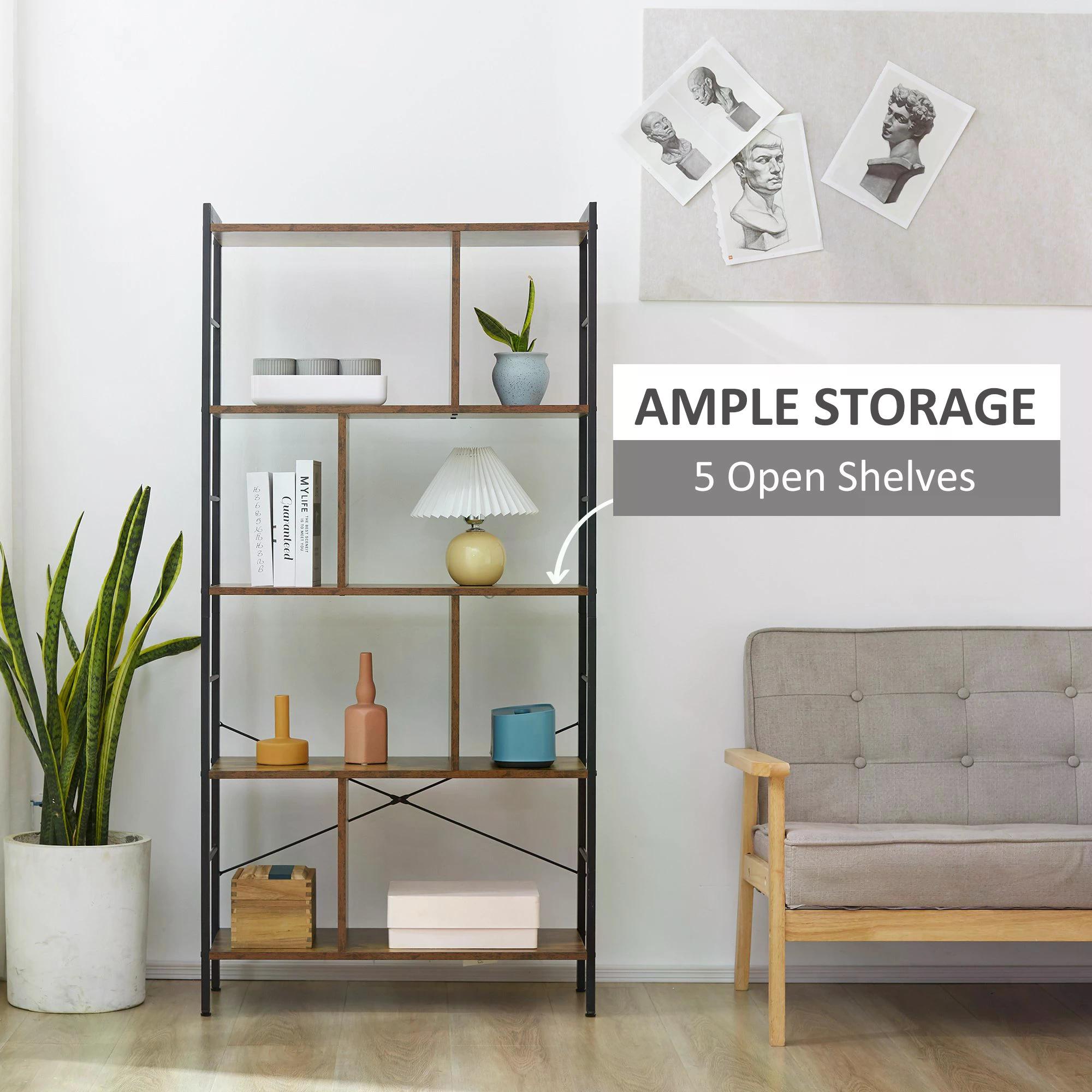 Blend it in, or bring it out - whatever way you choose, this shelving unit will make a beautiful statement in your home. The industrial design, in brown and black, is easy to mix with lots of different decors and furniture pieces, yet is striking enough to leave standing as an accent piece. It's formed of five shelves for plenty of display room, with dividers on each shelf for extra segmented space. The frame is made from metal so it's tough and supportive, with durable particle board shelves to hold all your decorations, ornaments and books etc. safely. Finished with adjustable feet for constant balance.