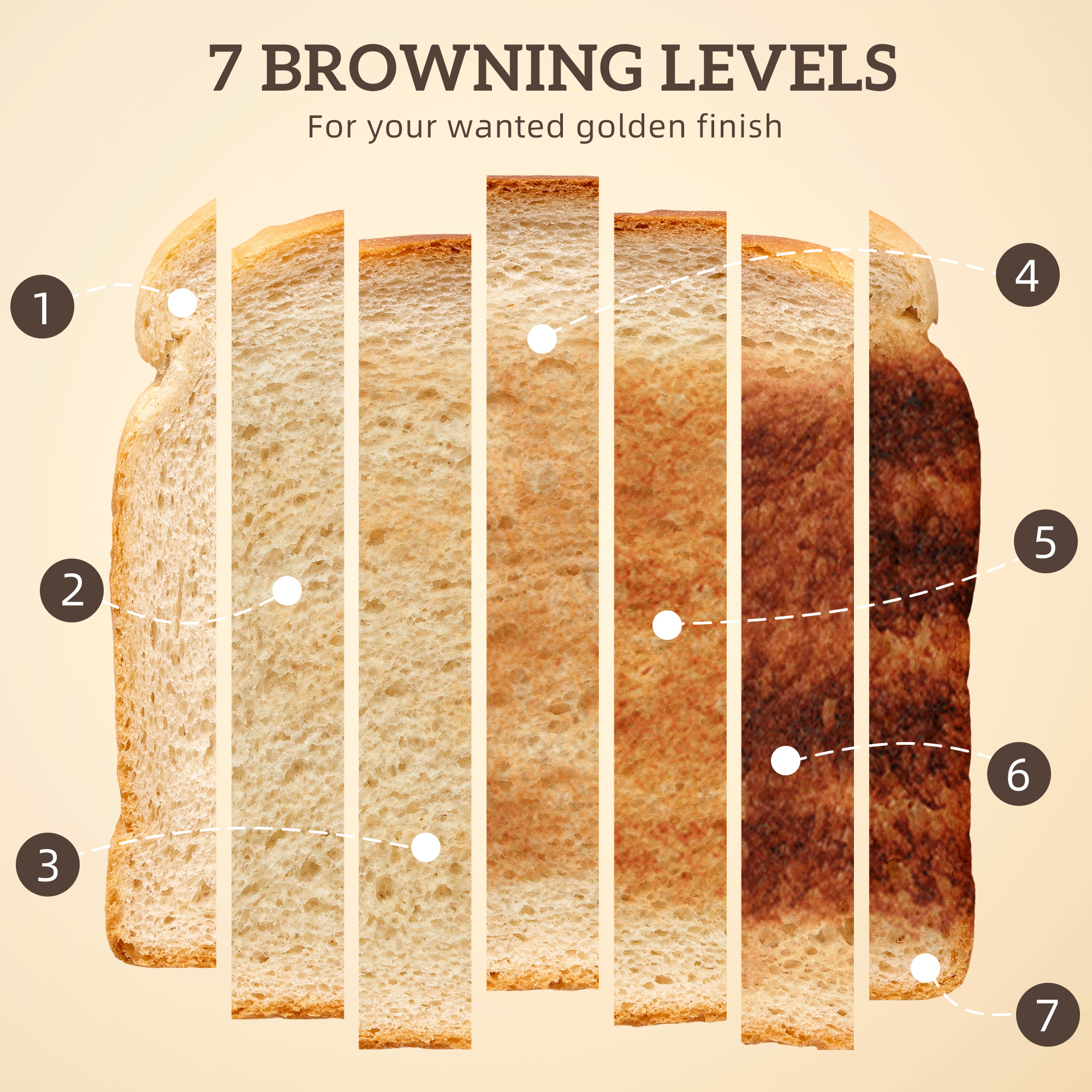 - Seven browning levels on toaster to customise toast to your preference