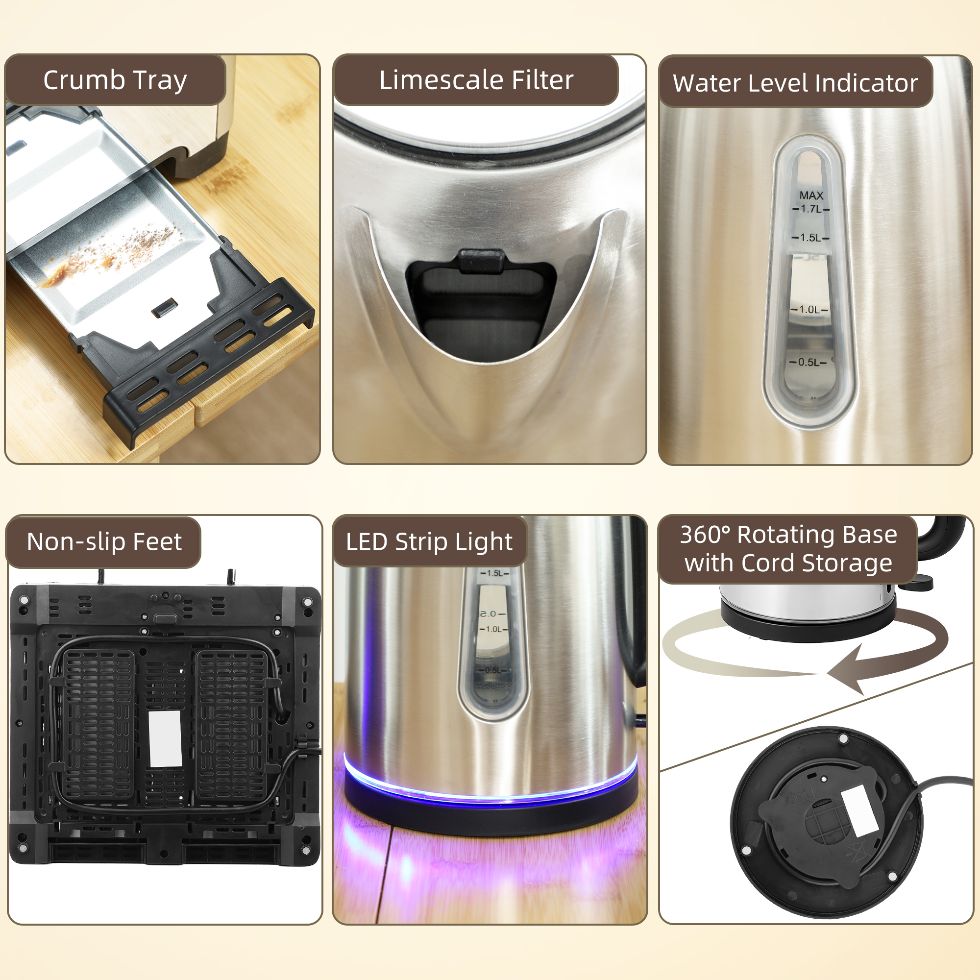 - Kettle Max Capacity: 1.7 L