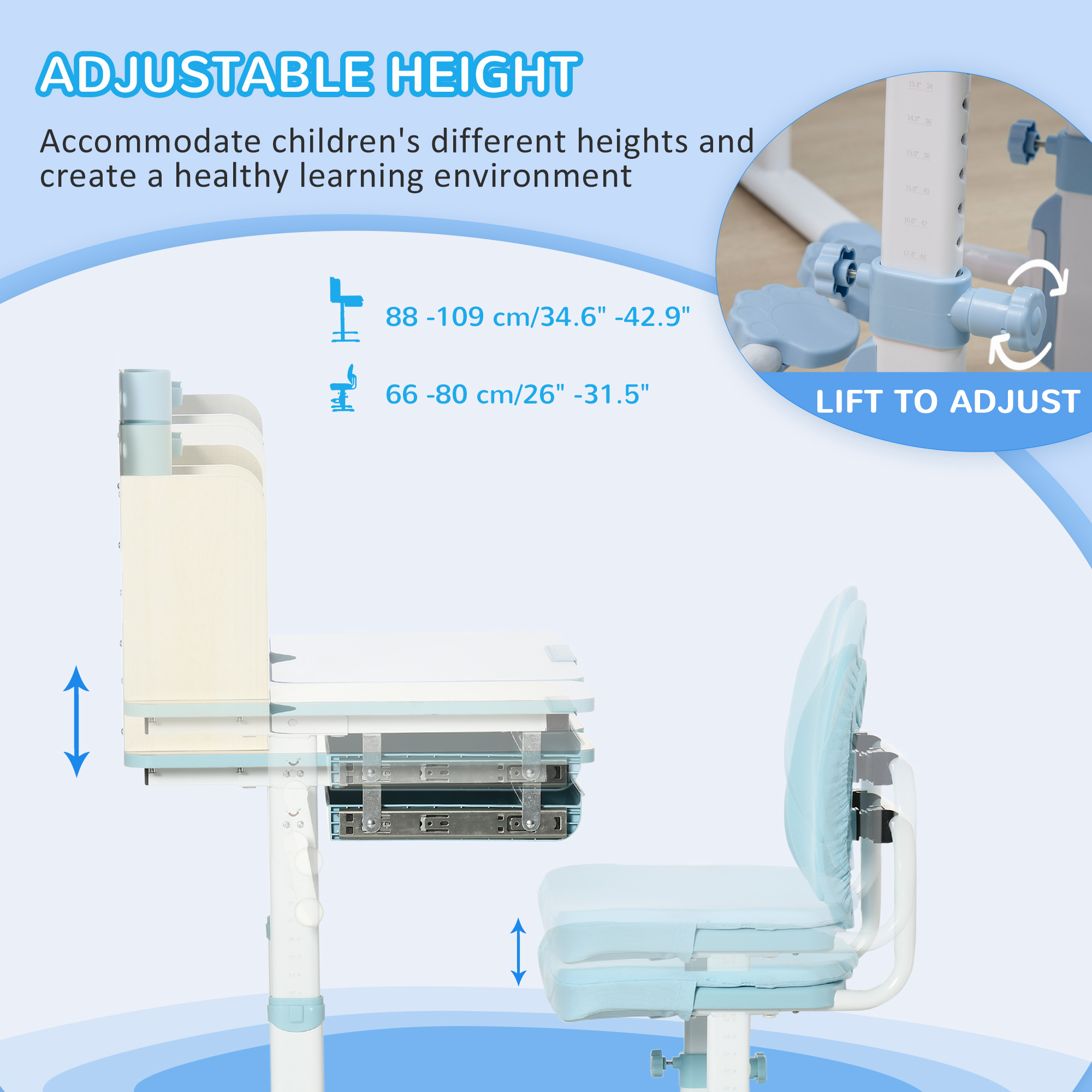 Learning is crucial for child development; they'll do that and more with this HOMCOM desk and chair set. Their own space to play, learn, develop and become independent, getting the most out of their early years. For ages 3-12 years, it's useful from nursery right up until the first year of high school. Sitting on a comfortable and cushioned seat, its curved backrest and adjustable tabletop promote good posture. Finished with a drawer, shelf and pen holder to keep everything neat and organised.