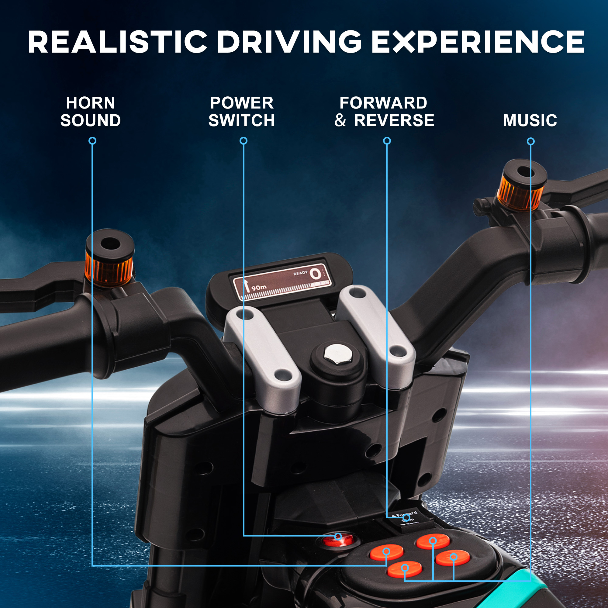 - Includes a start-up sound, siren and music, adding to the fun