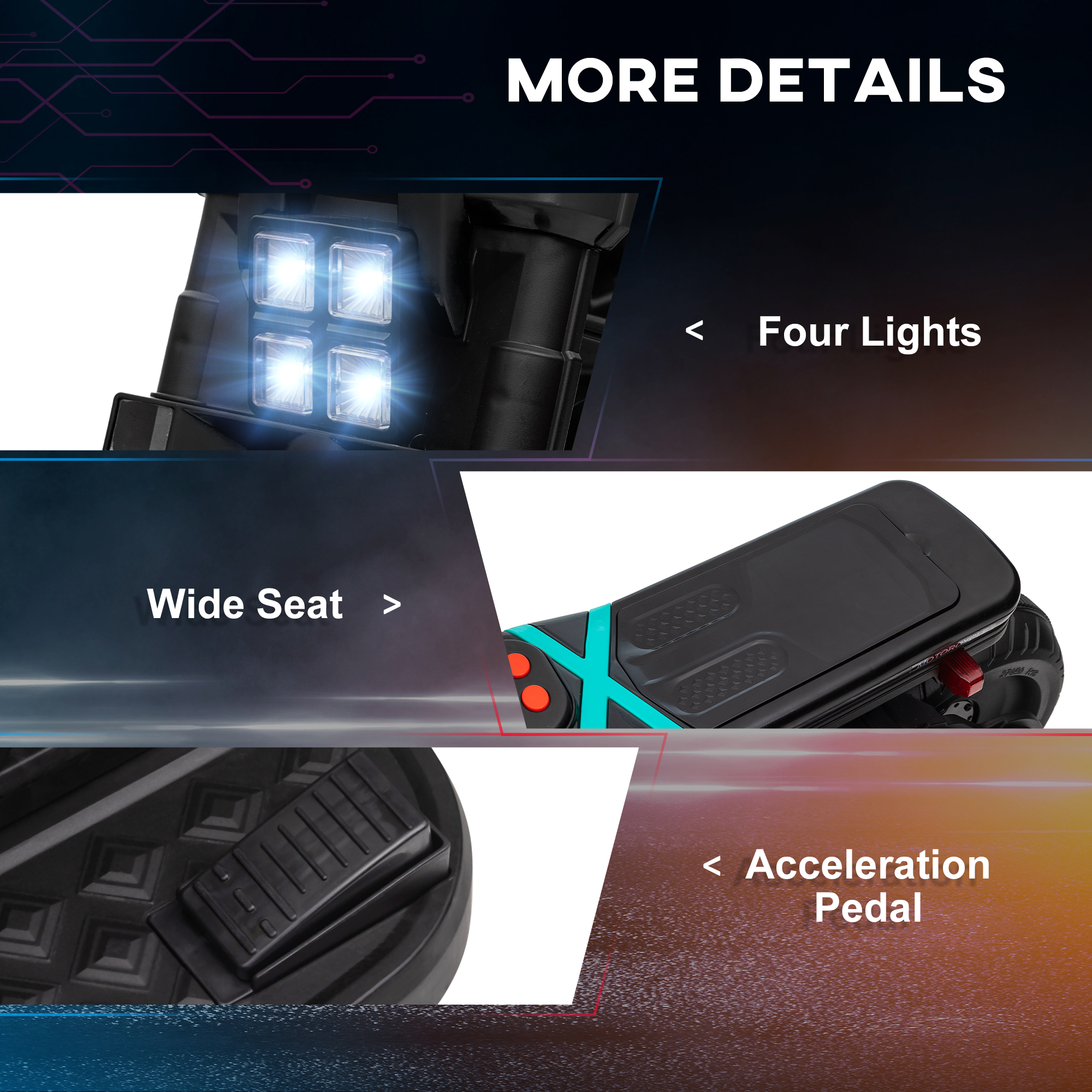 - Four headlights – perfect for evenings and dim areas