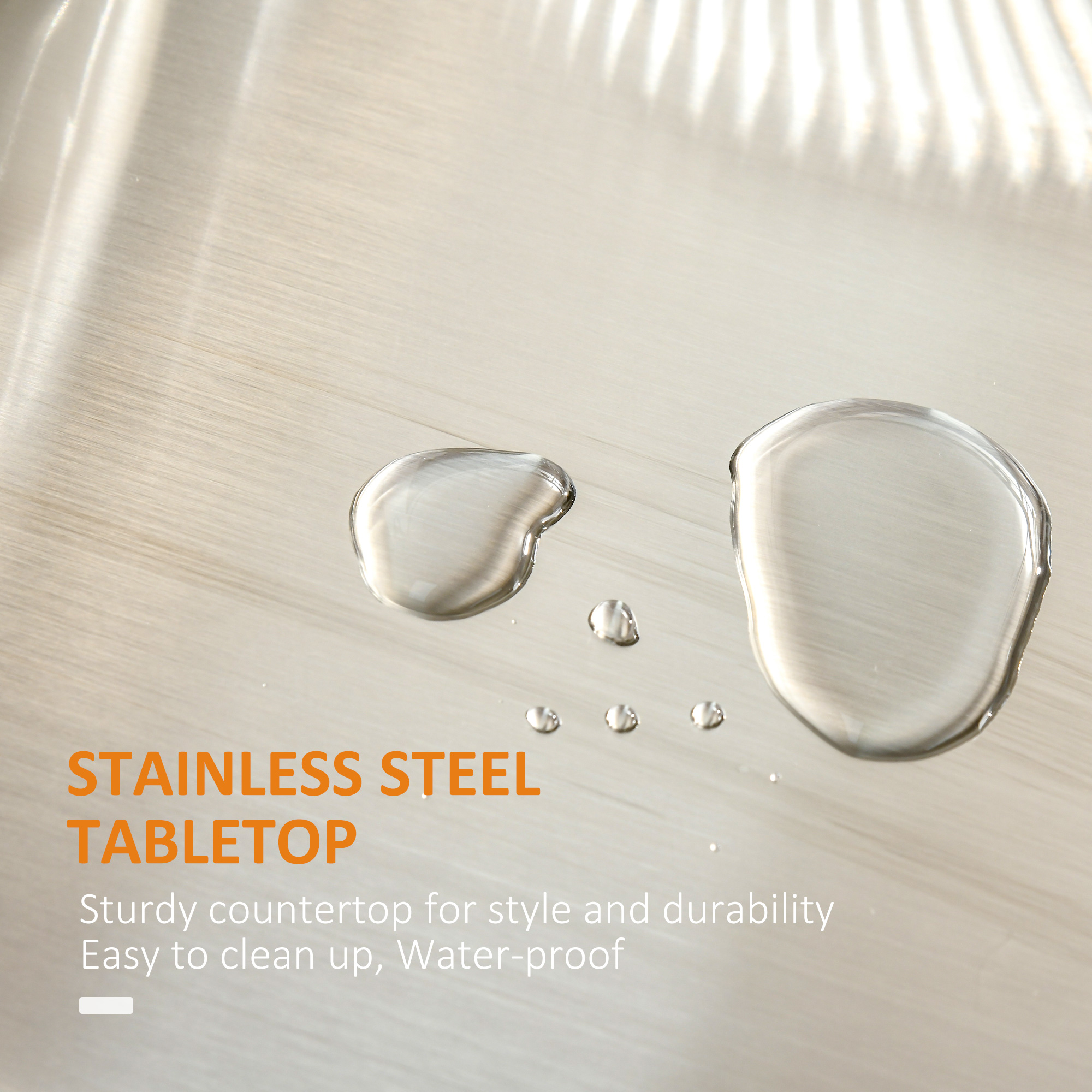 This stylish kitchen base unit from HOMCOM is a great addition to any kitchen space, providing additional storage and a preparation area. This bar cart comes with a drawer, storage cupboard, towel rail, spice rack and cutter rack for plenty of storage. The metal countertop gives safe preparation area. Completed with four wheels to move around easily.