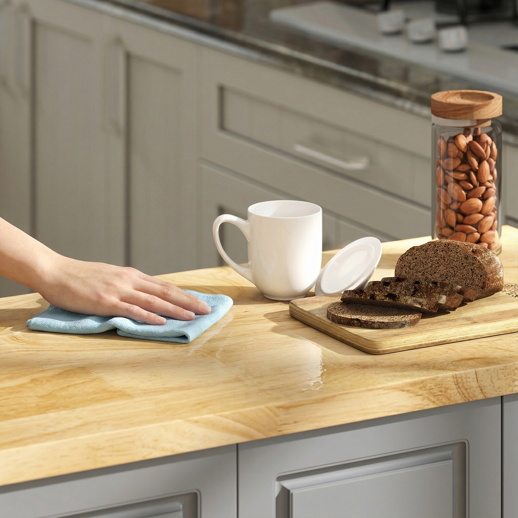 - Made of MDF panels and rubber wood countertop