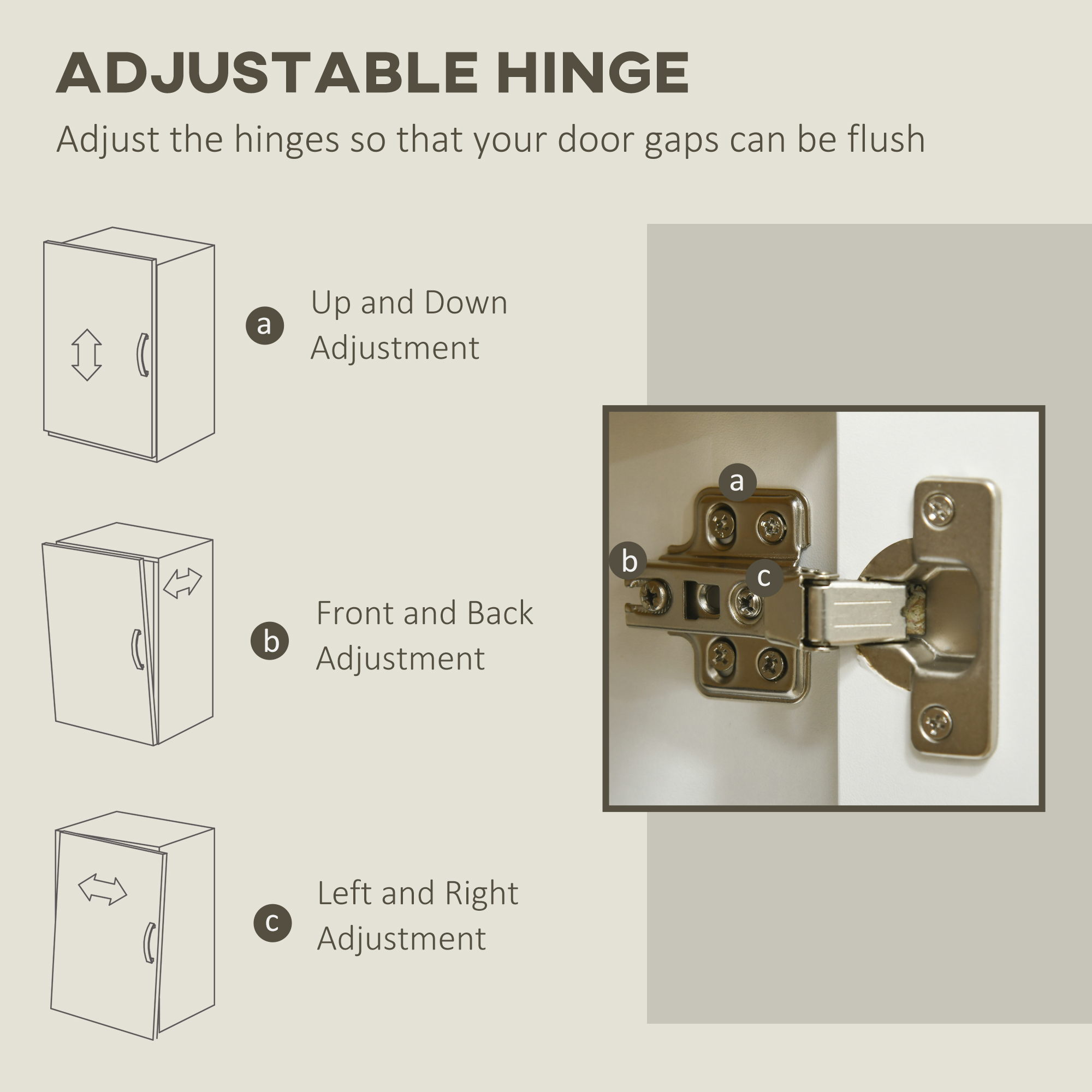 - Steel hinges make opening and closing doors smooth
