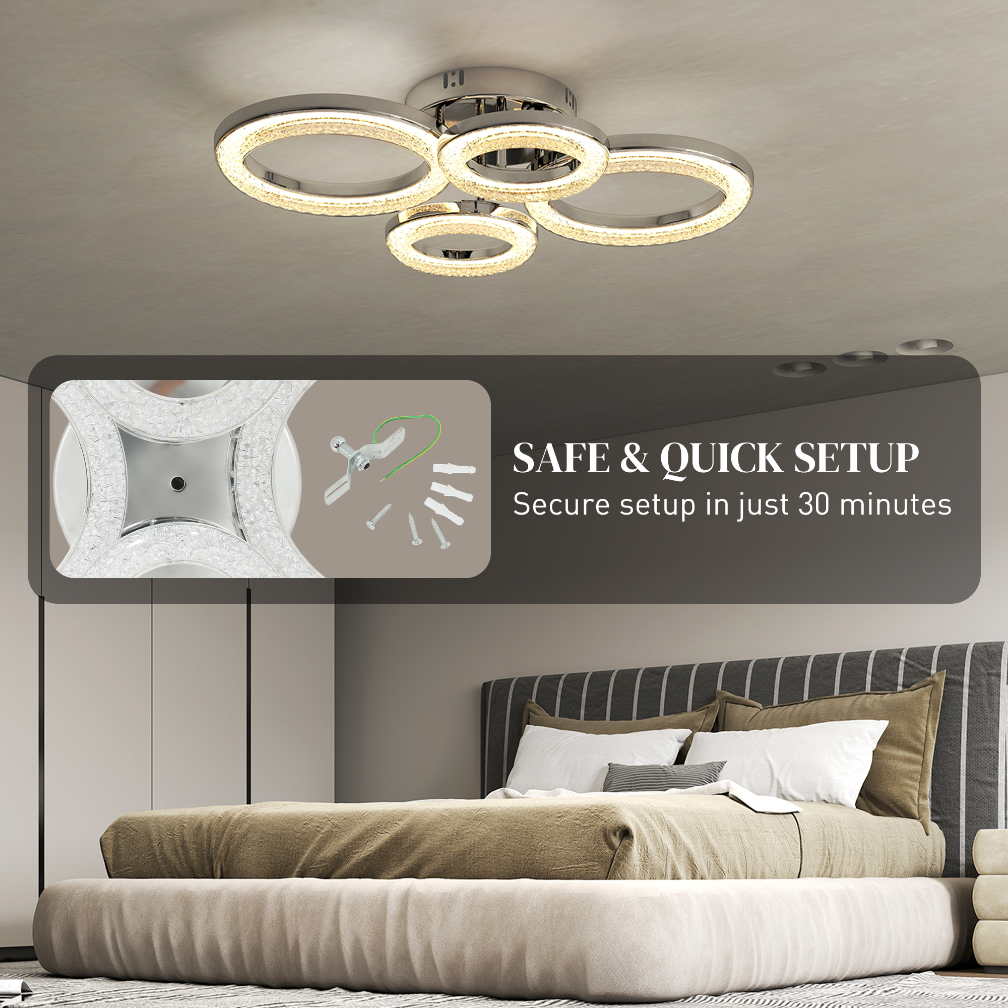 - Features an elegant four-ring design, becoming a stunning centrepiece in your room