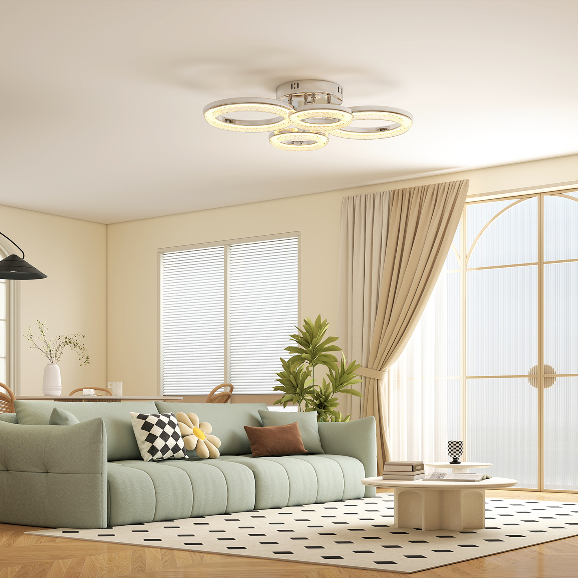 Tired of your living room feeling dull and the lighting never quite right for the occasion? A single, harsh light can make gatherings feel unwelcoming and your decor look flat. This HOMCOM LED ceiling light transforms your space. Effortlessly switch moods with your wall switch, from a warm glow to bright light. Its stunning four-ring design becomes an artistic centrepiece, bathing your room in brilliant, inviting illumination and reflecting your modern taste.
