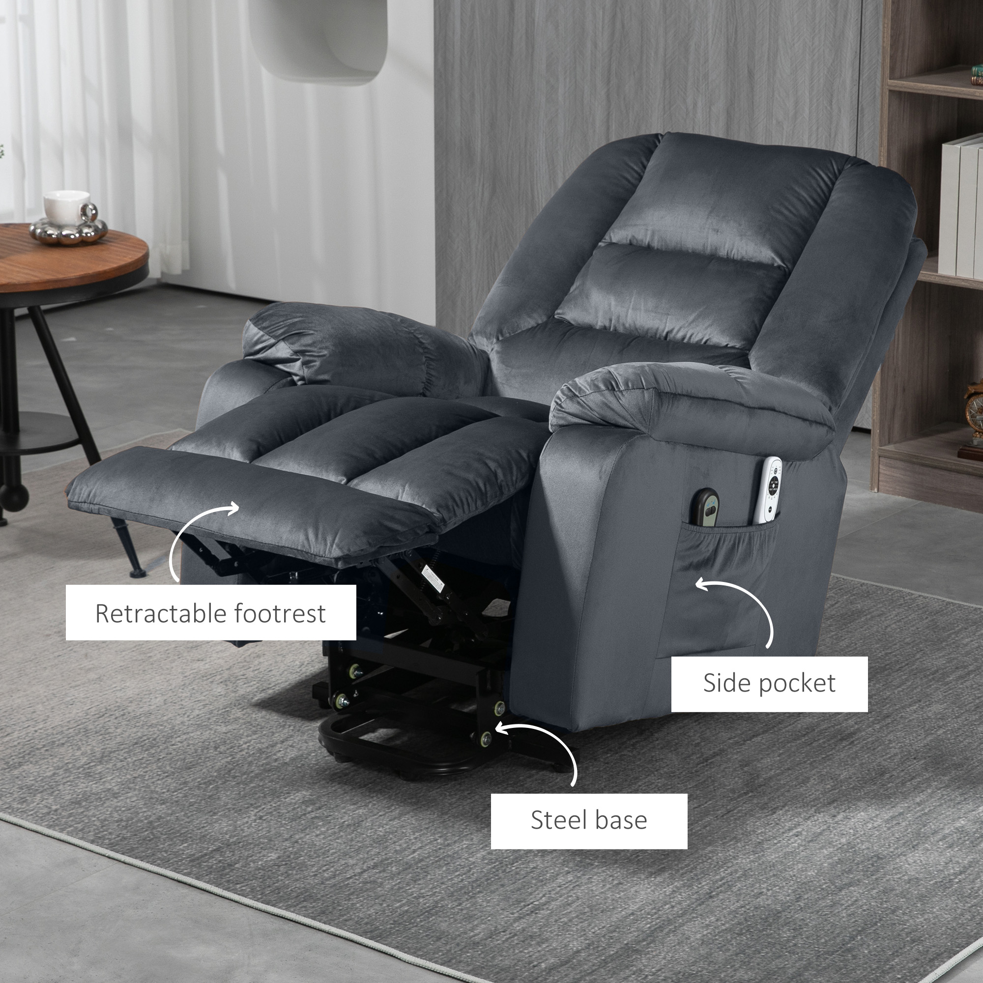 For that little help moving in and out, along with soothing your body whenever, choose this HOMCOM massage power lift chair. The 45° lifting seat lifts you up and lowers you down gently - great for the elderly and those with injuries. The 135° reclining back and footrest means total body relaxation. Features eight vibrating massage points - four modes - to soothe any body aches. Recliner chair finished with velvet-feel upholstery for a sleek, stylish look.