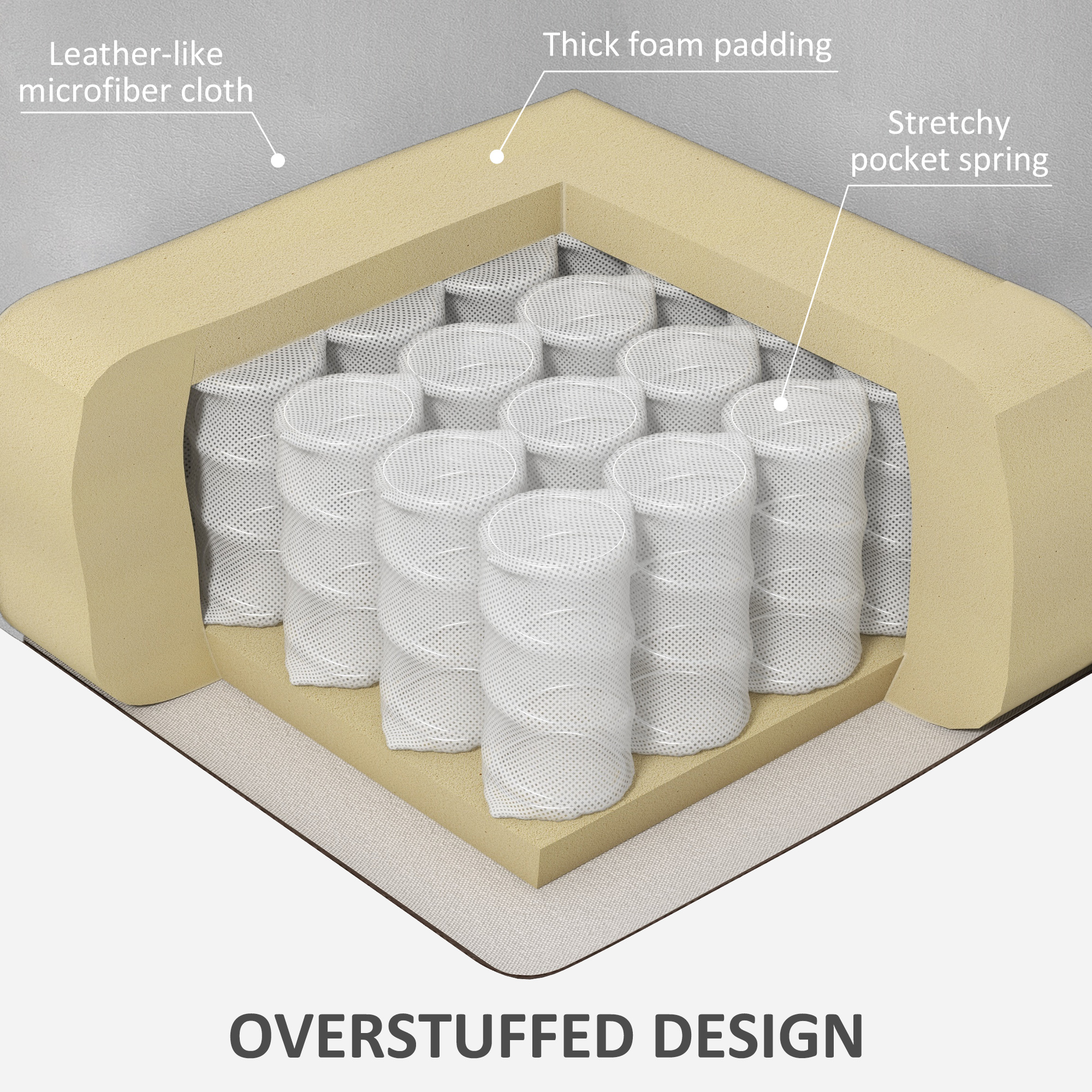 - Pocket spring and overstuffed padding for comfort