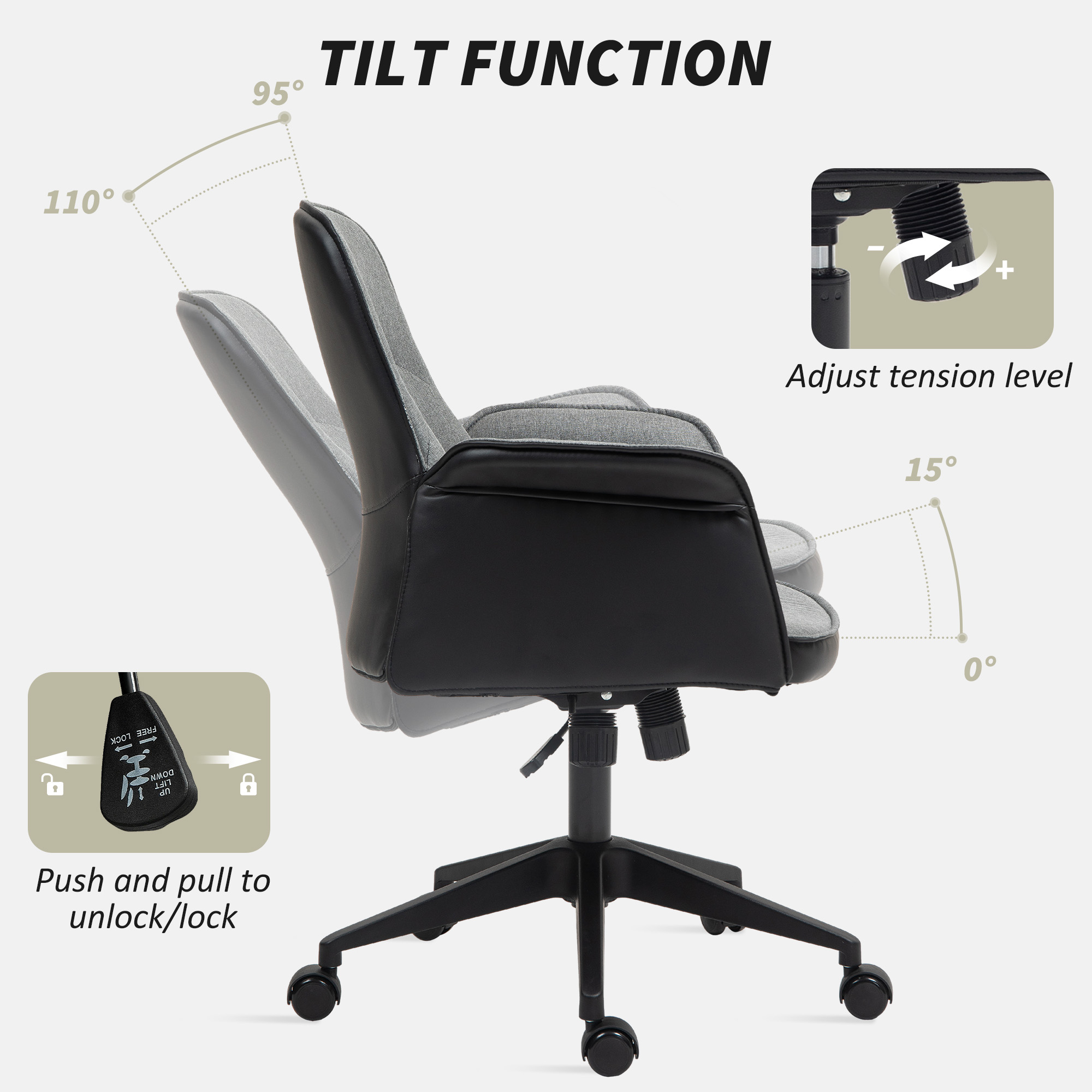 When working long hours at home, this HOMCOM swivel office chair is the perfect spot. It's filled with medium-density foam for plenty of comfort, with smooth linen-look upholstery on the seats to top; the back faux leather adds a sleek touch. Tilt gently as you like with control - complete with five wheels to move this chair around easily.