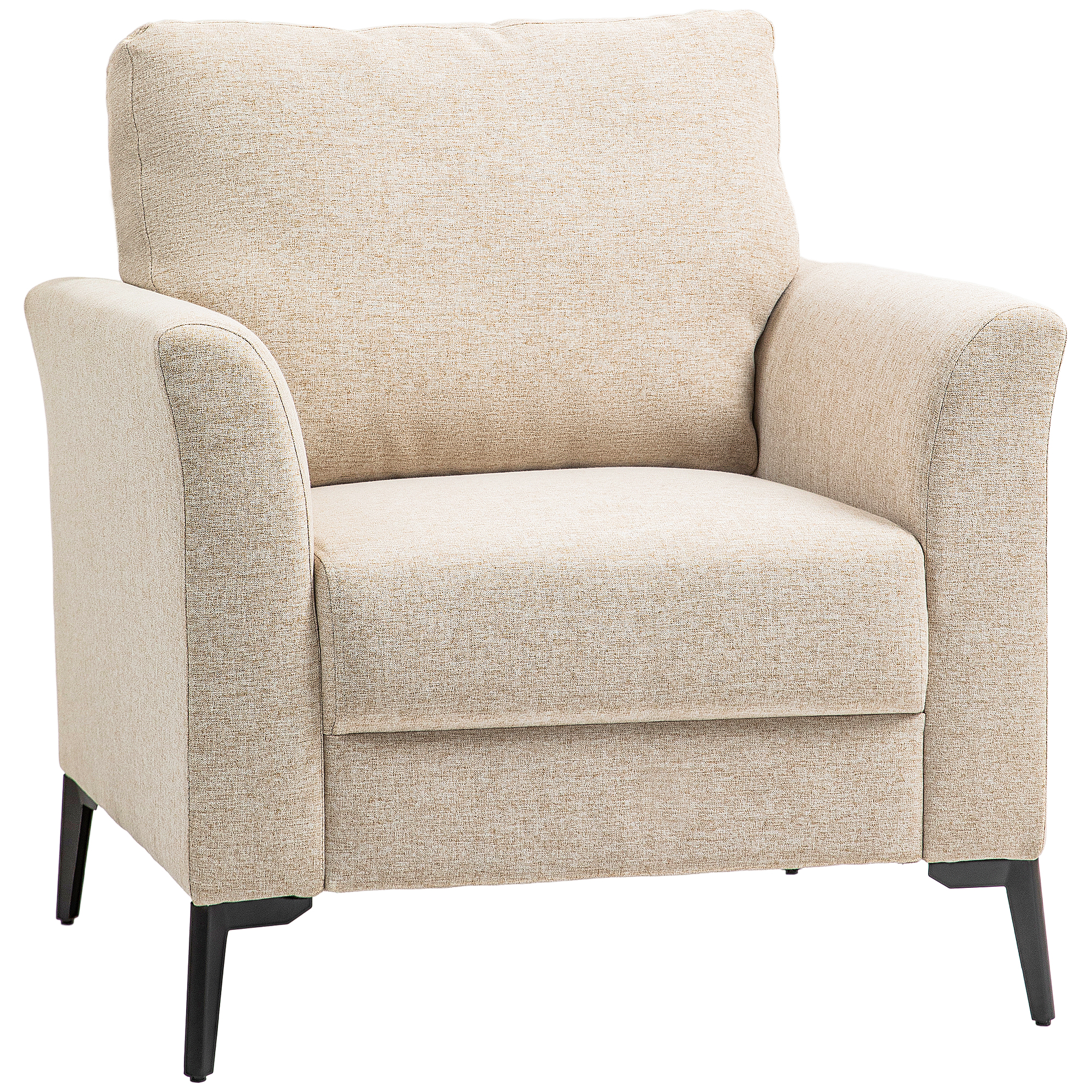 Sink into comfort with this HOMCOM accent chair for living room. Thick, high-density padding means soft comfort to keep you relaxed. The high back and armrest keep you supported. With a wooden frame and metal legs, this occasional chair has a strong, supportive core. Complete with protective foot pads.