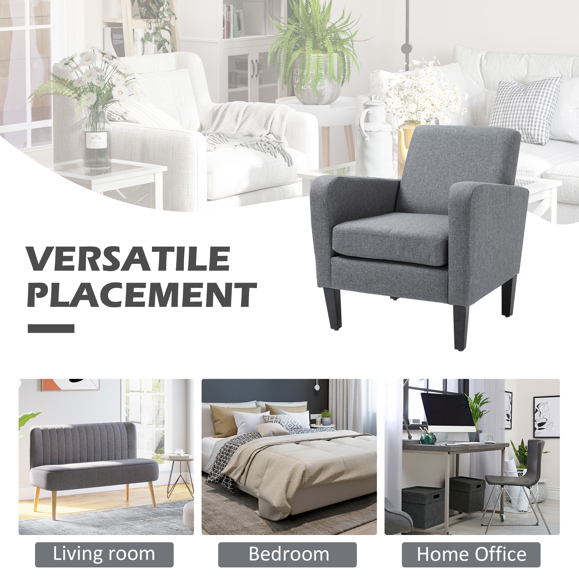- Rubber wood frame and legs make the comfy chair strong