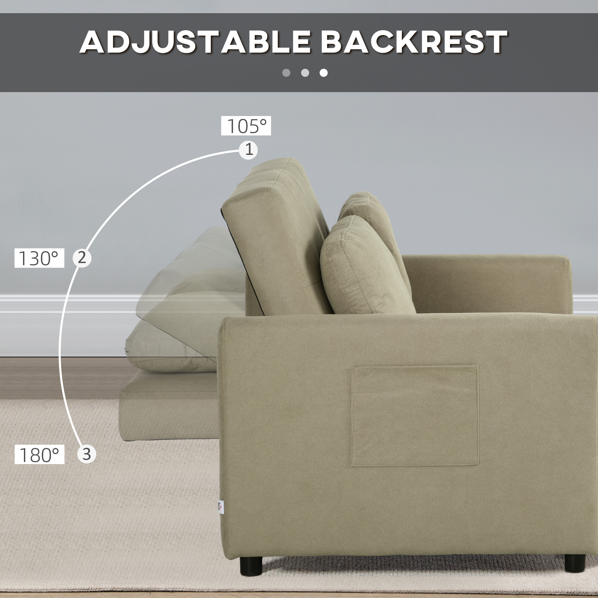 A small place to relax and rest - day and night. This HOMCOM sofa bed serves as a two-seater sofa for daytime use and a bed for nighttime use. Filled with foam, this is a soft and comfortable piece to sink into, with the back and arms giving plenty of support. Two pillows included for extra comfort. The back angle is adjustable between 105°, 130° and 180°. Wrapped in soft velvet-feel upholstery, finished with two handy side pockets.
