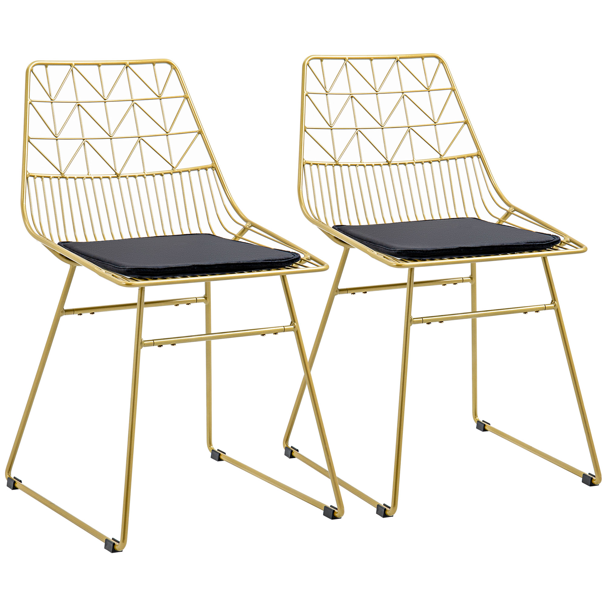 Step up the luxe look in your home - bring in these two HOMCOM tall dining chairs. The frames, made from powder coated steel for a strong and supportive frame, are crafted into a two-pattern cut-out design: a cool design which is sure to bring plenty of character into your space. The gold-coloured finish is glamorous. Complete with a padded seat for comfort.