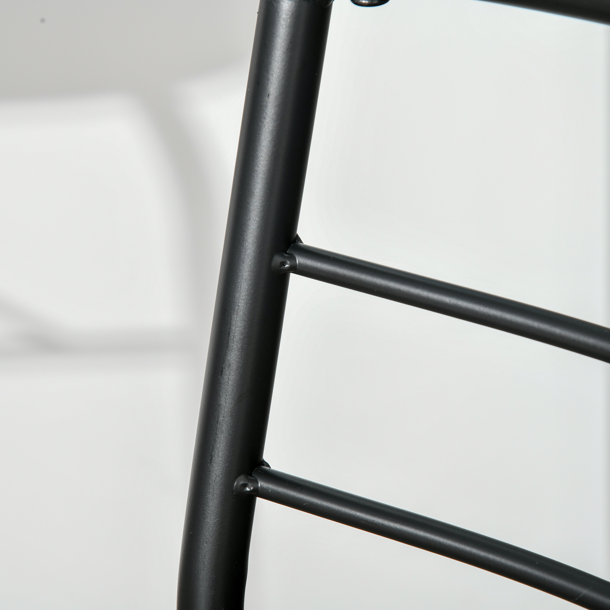 For all spaces is this HOMCOM three-piece dining set. With two chairs and a matching table, you sit and dine with company all in one spot. The frames are metal for a strong core, with robust MDF tabletops: the natural wood-effect design is beautiful. Set is complete with a small shelf under the tabletop, to hold tableware and kitchen accessories.