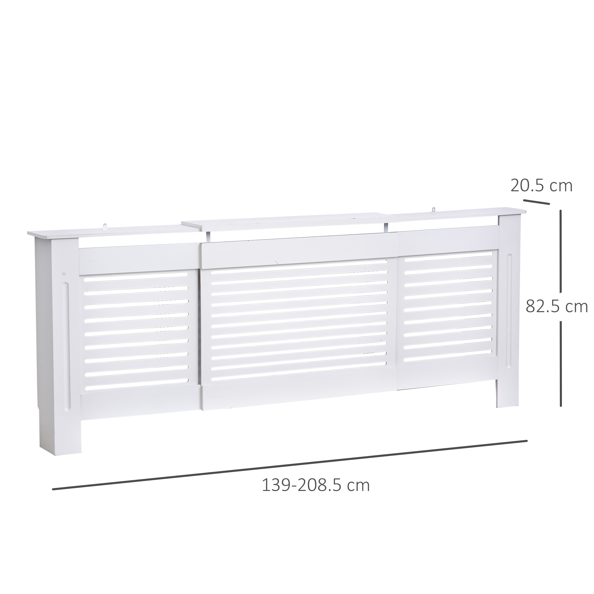 This modern and contemporary styled radiator cover from HOMCOM is a great way to enhance the look of any room. Most radiators are unsightly and this can add a touch of elegance. Made from white painted MDF, it is ready to be assembled and installed without the need to add any finishing touches. It is also a great way to keep your children and pet safe from touching the hot radiator surface and causing injuries. You can adjust its length easily to suit your radiator size.The slatted design allows airflow efficiently without restricting the heat to be radiated to the room. This is an elegant and practical addition to any home and office.
