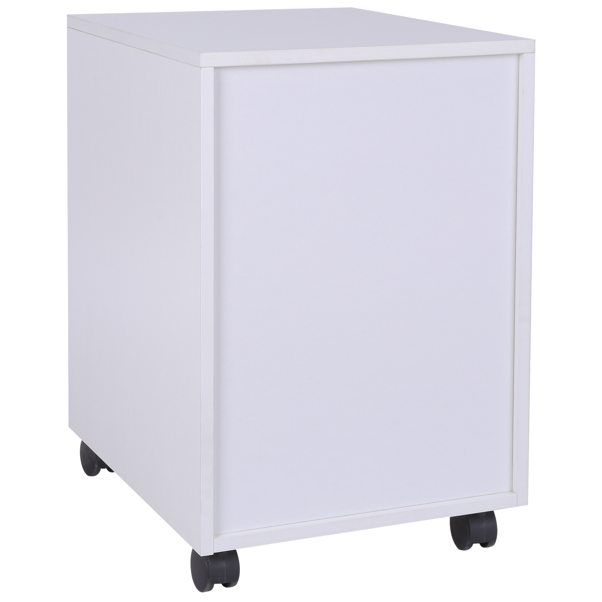 This HOMCOM three drawer filing cabinet is ready to be your daily work assistant. Have everything you need right next to you, thanks to the three drawers: keep files stored and organised. Made from MDF, it's sturdy and comes in a wood-effect design for a forever classic look. Four wheels to move around easily - two come with breaks so it stands in place.
