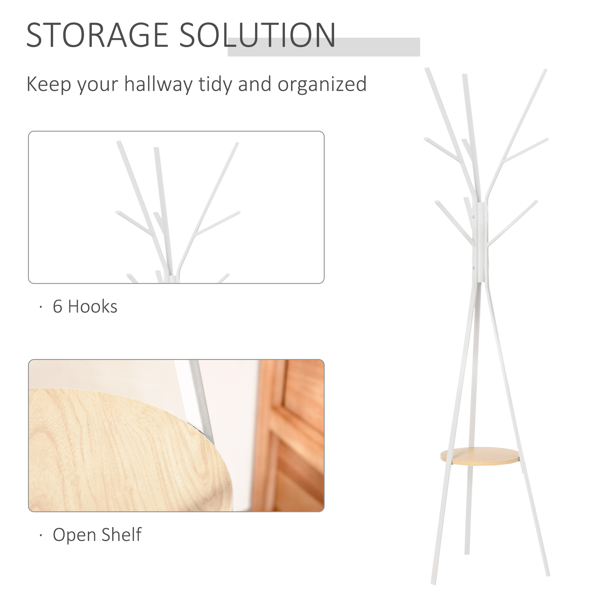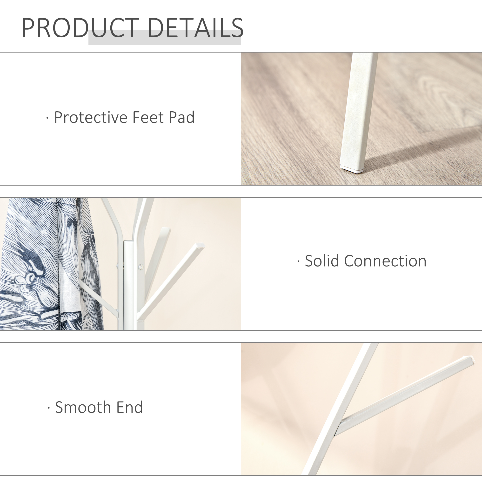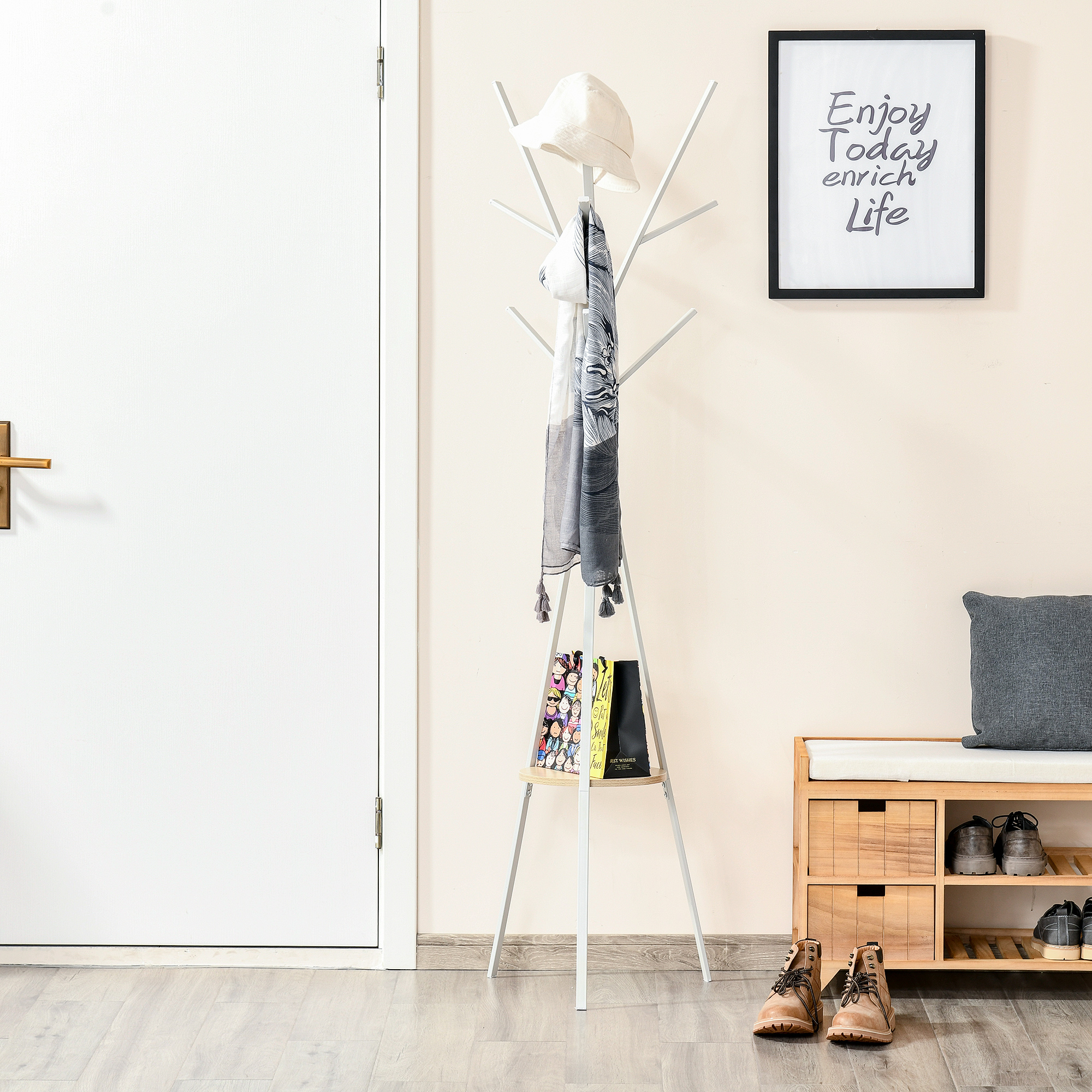 This functional coat rack from HOMCOM is designed to handle your entire family's coats and other heavy garments including clothing accessories such as hats, scarves, and beanies. It combines a freestanding coat rack and a display stand in an easy to use unit. A compact and modern design helps you save in your hallway or entryway. What's more, you can place it in any corner, wherever you want such as the bedroom, garage, or office.