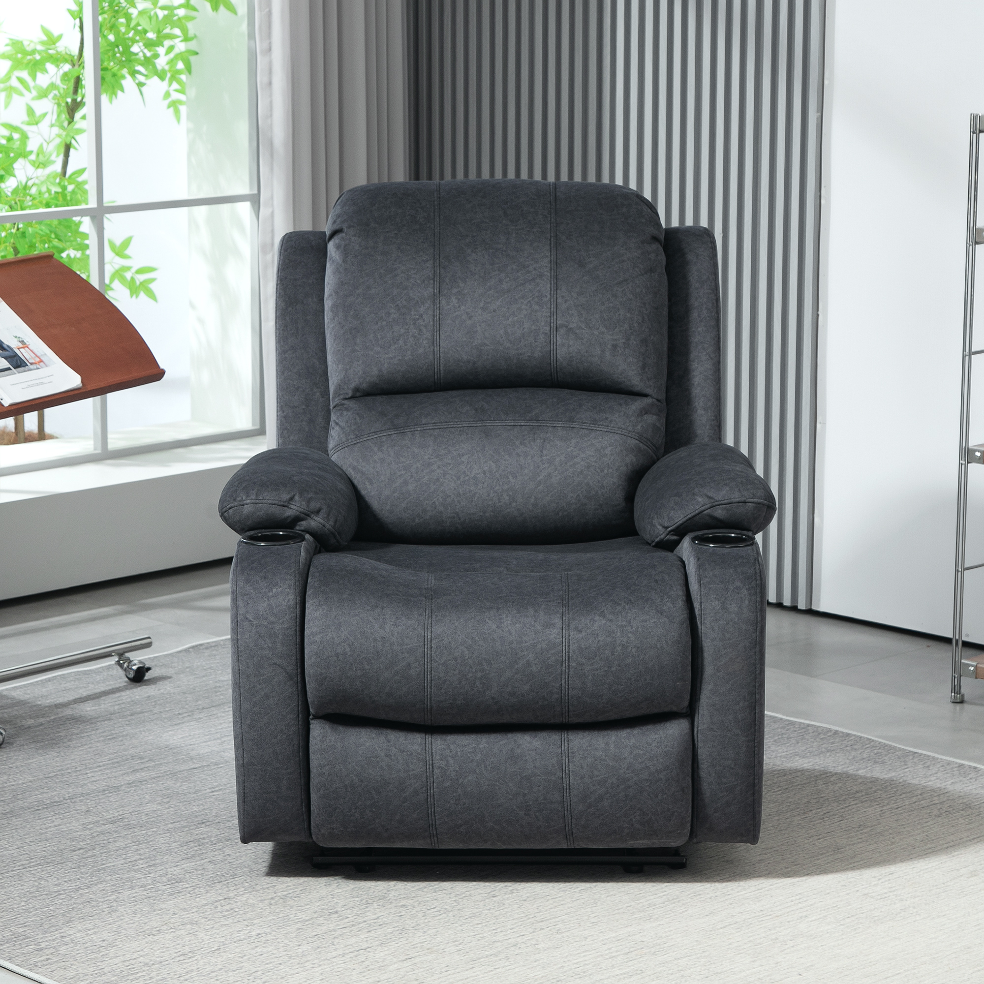 Pull the side pull tab to sink into your comfort. This HOMCOM recliner chair is thickly padded all over, with a 135° manual back and footrest, so whatever you want to use this armchair for, it gives a soft foundation. Both arms come with a cup holder, so your drink will be close to hand. Wrapped in microfibre faux leather, this is a soft and stylish piece you'll love spending your time in.
