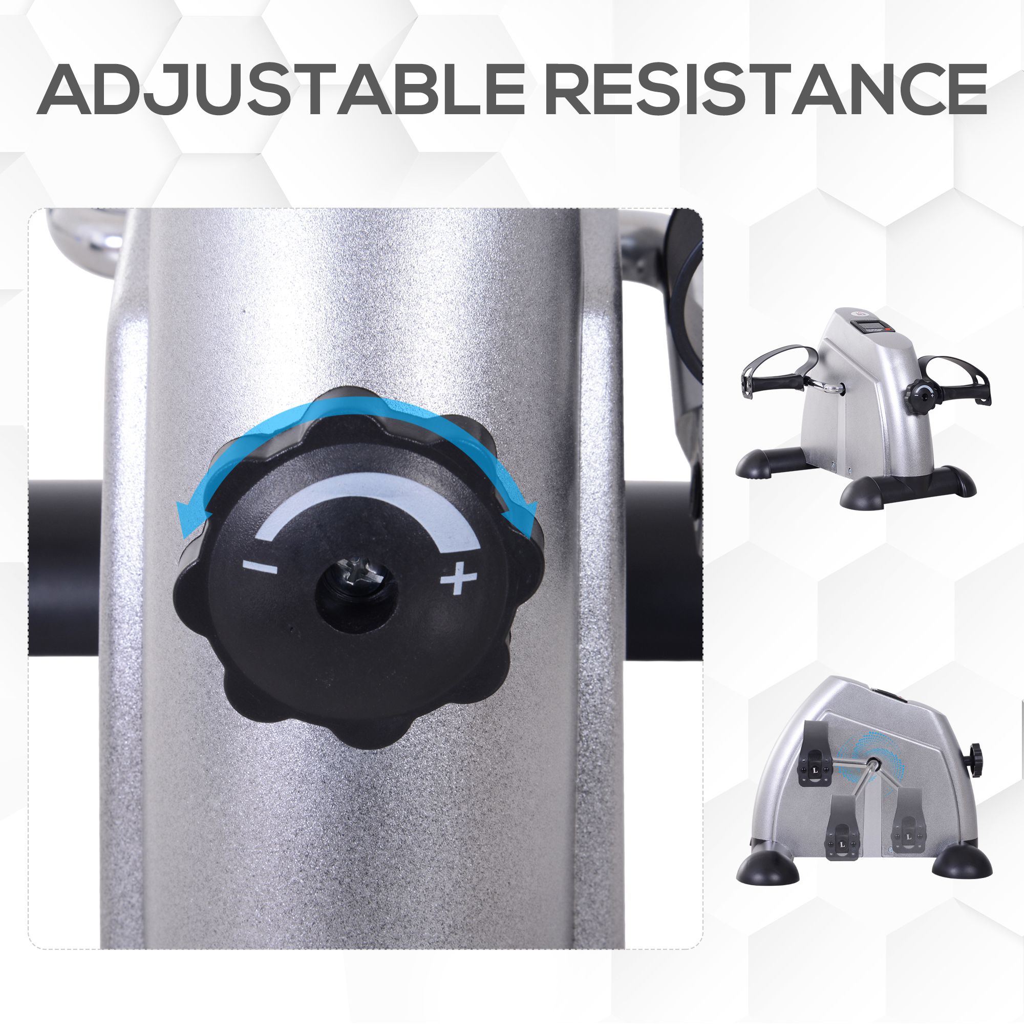 For a low impact, effective and hassle-free exercise option, look to this under desk exerciser. Its design features a large and easy-read LCD screen that shows the time, speed, current count, total count and calories burnt, allowing you to keep track of everything easily. This desk bike is finished with a tension knob to control the resistance and non-slip pedal straps to keep your feet and hands will not fall out and causing any harm.