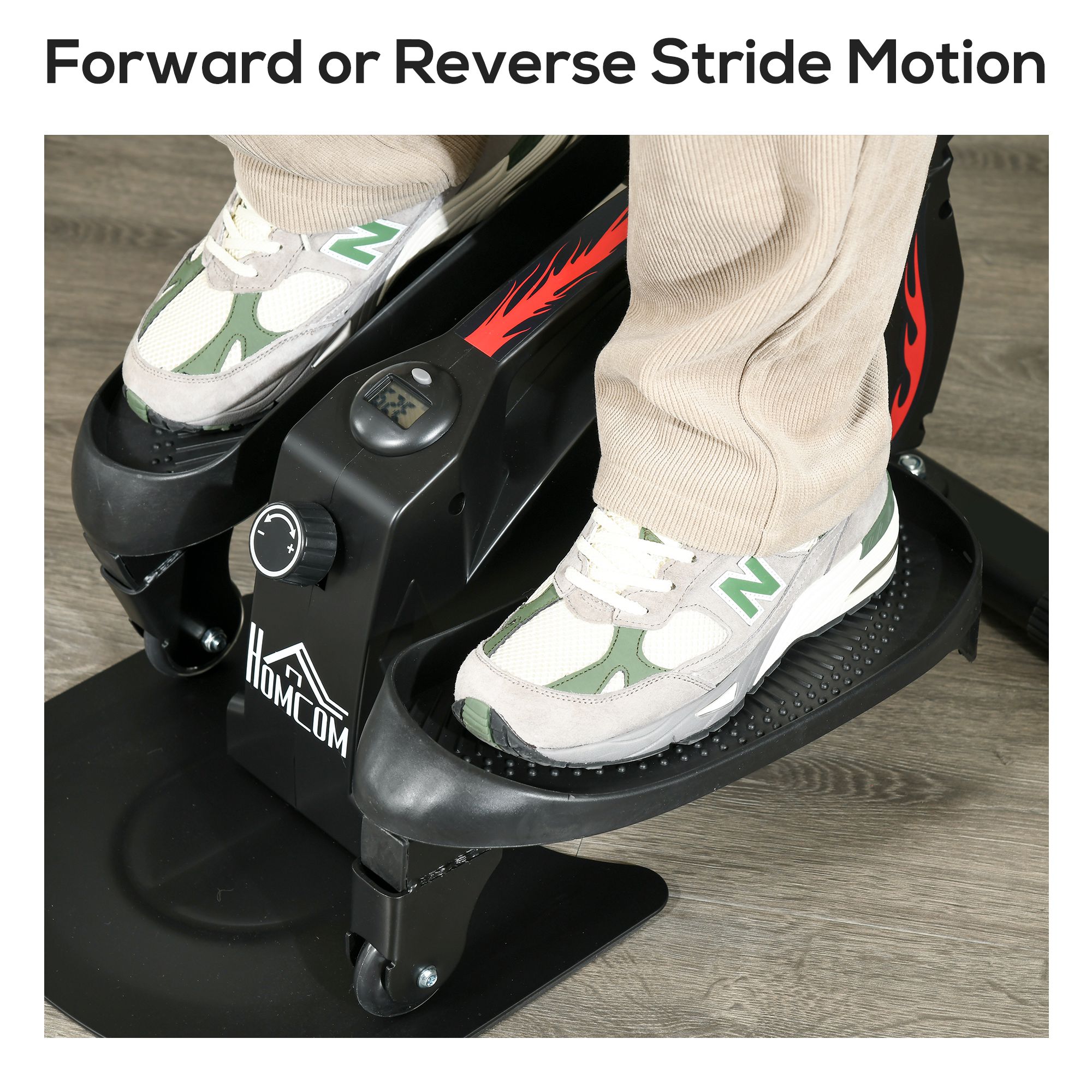 For when your exercise time can be limited, why not opt for something you can use almost anywhere with this mini elliptical trainer from HOMCOM? Its compact size will fit into almost anywhere and is ideal for popping under the office desk as you work. It's fitted with two large foot pedals which are able to move both clockwise and anti-clockwise to vary up your work out, each featuring a textured top to prevent your feet from slipping. A built-in LCD display shows you the time, distance and calories elapsed for you to keep on track of your goals. It's finished with an adjustable resistance system, making it suitable for people of all fitness levels. An easy way to increase blood circulation and prevent muscle and body fatigue from being still.