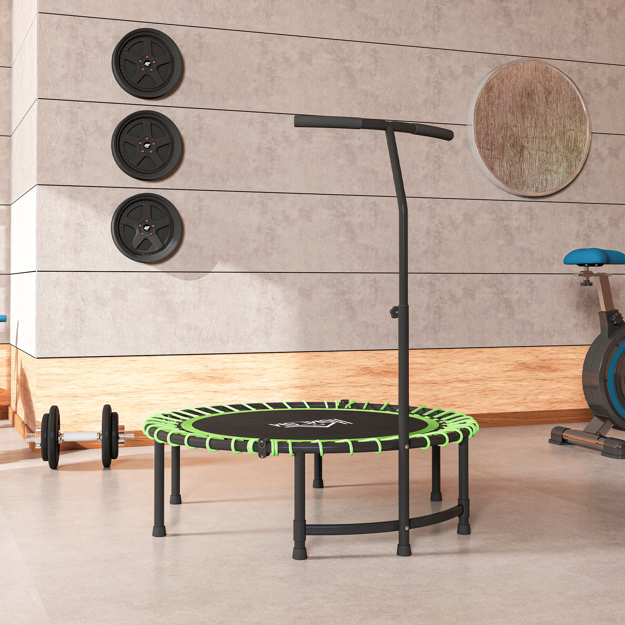 Whether you're looking to exercise inside, outside, or during your lunch break in the office, then this mini foldable trampoline from HOMCOM is great for helping you improve your fitness. Made from steel to support up to 150 kg, with a three-level adjustable T-bar for you to hold on to whilst you work out. It is made with steel legs for balance and stability, whilst the rubber hats help protect your floor beneath from any scratching and damage.