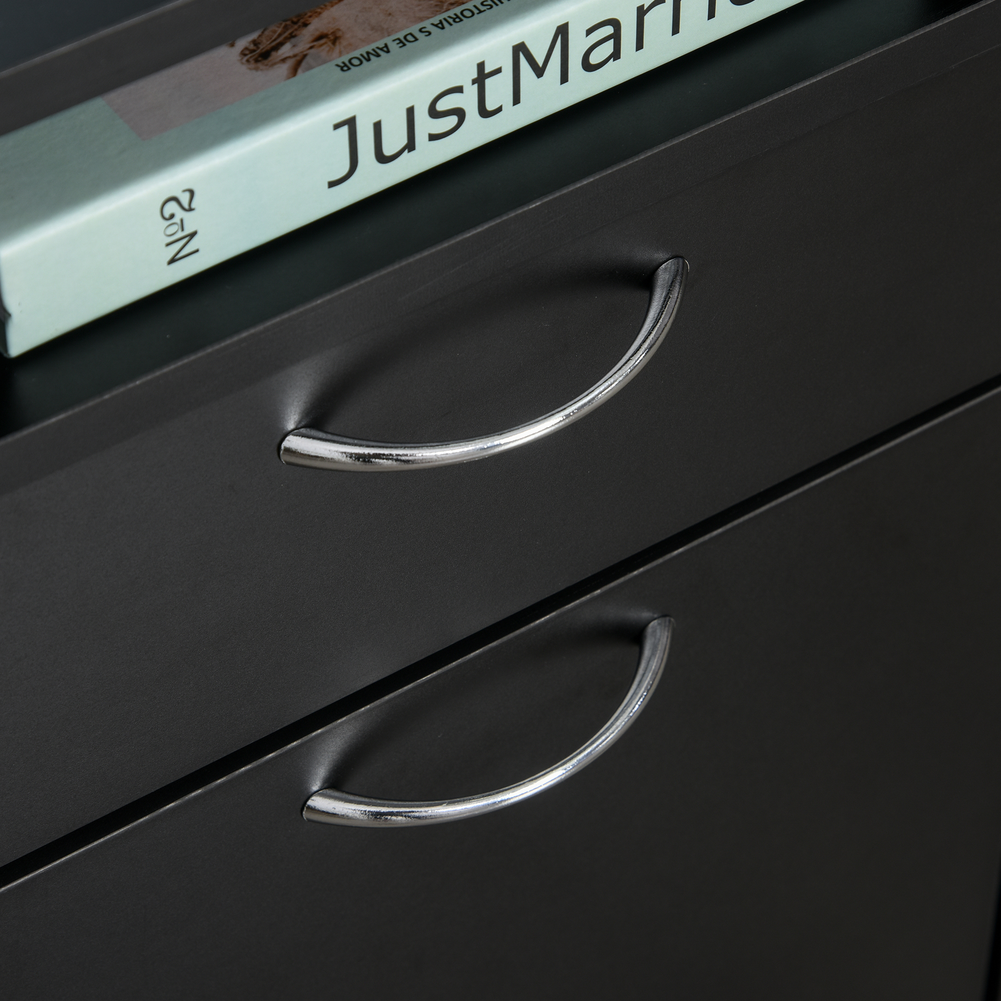 - Silver-coloured metal handles for easy opening and closing of the drawers