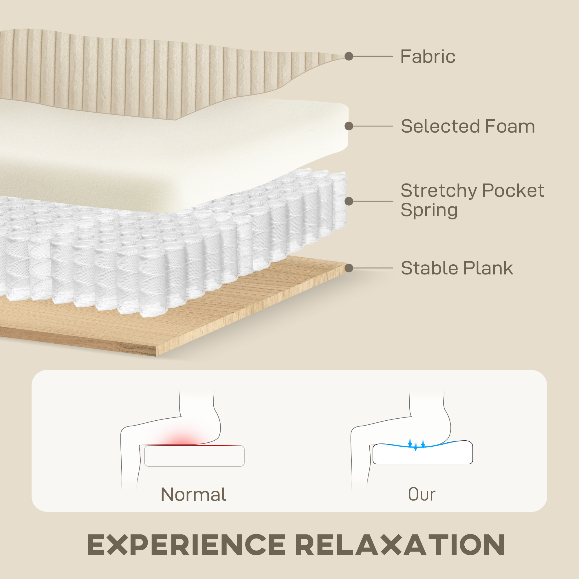 - Spring pack and high-density sponge offer optimal comfort