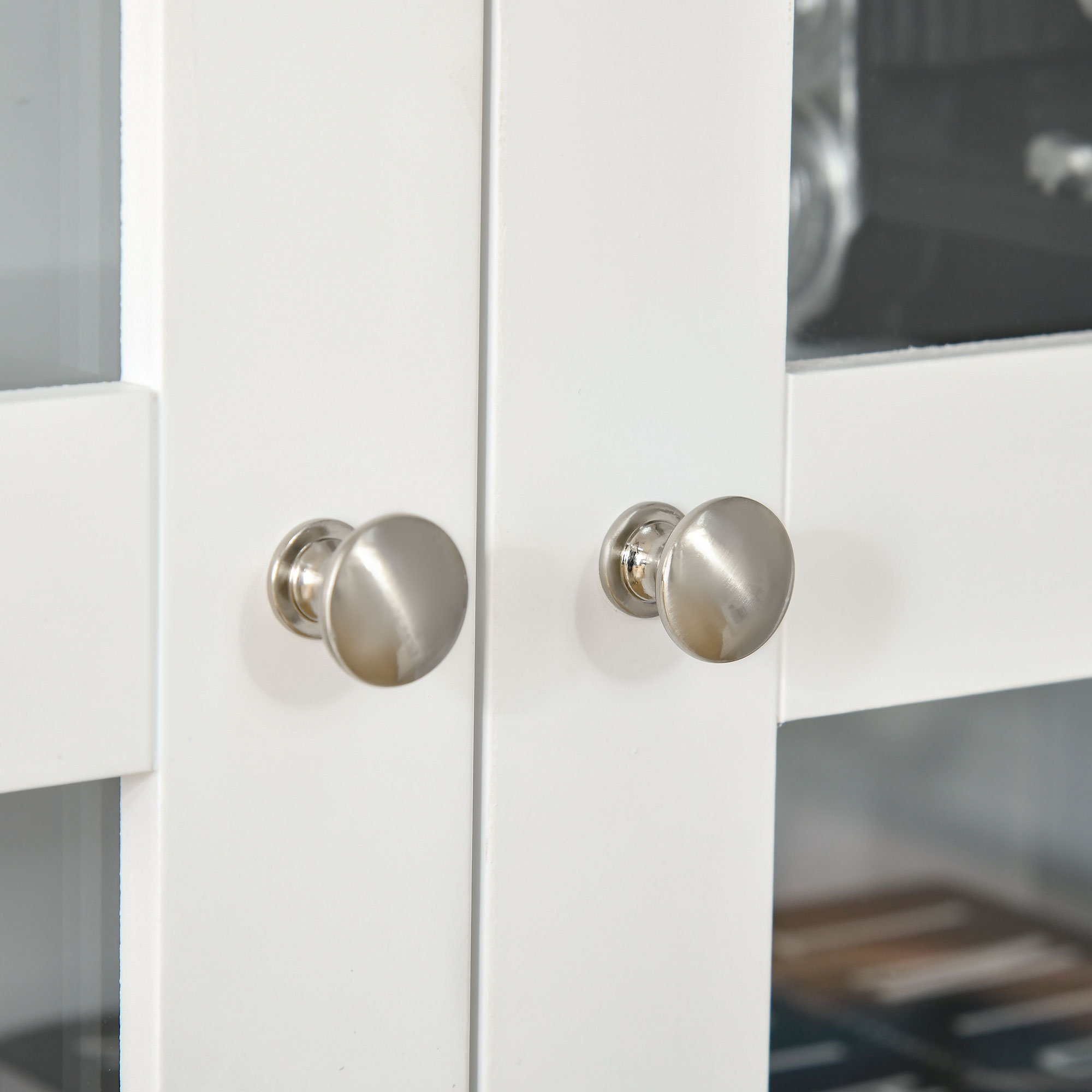 Create a tidy and presentable home with ease - do it with this HOMCOM display cabinet. It's formed of a top cabinet and bottom cupboard for plenty of storage; the upper is fitted with tempered glass doors so you can see through and display your favourite items beautifully. Also inside the top cabinet, there are two adjustable shelves to store items at the position you want. Made from MDF, this unit is stable-great for the everyday, it's finished with safe anti-tipping straps.