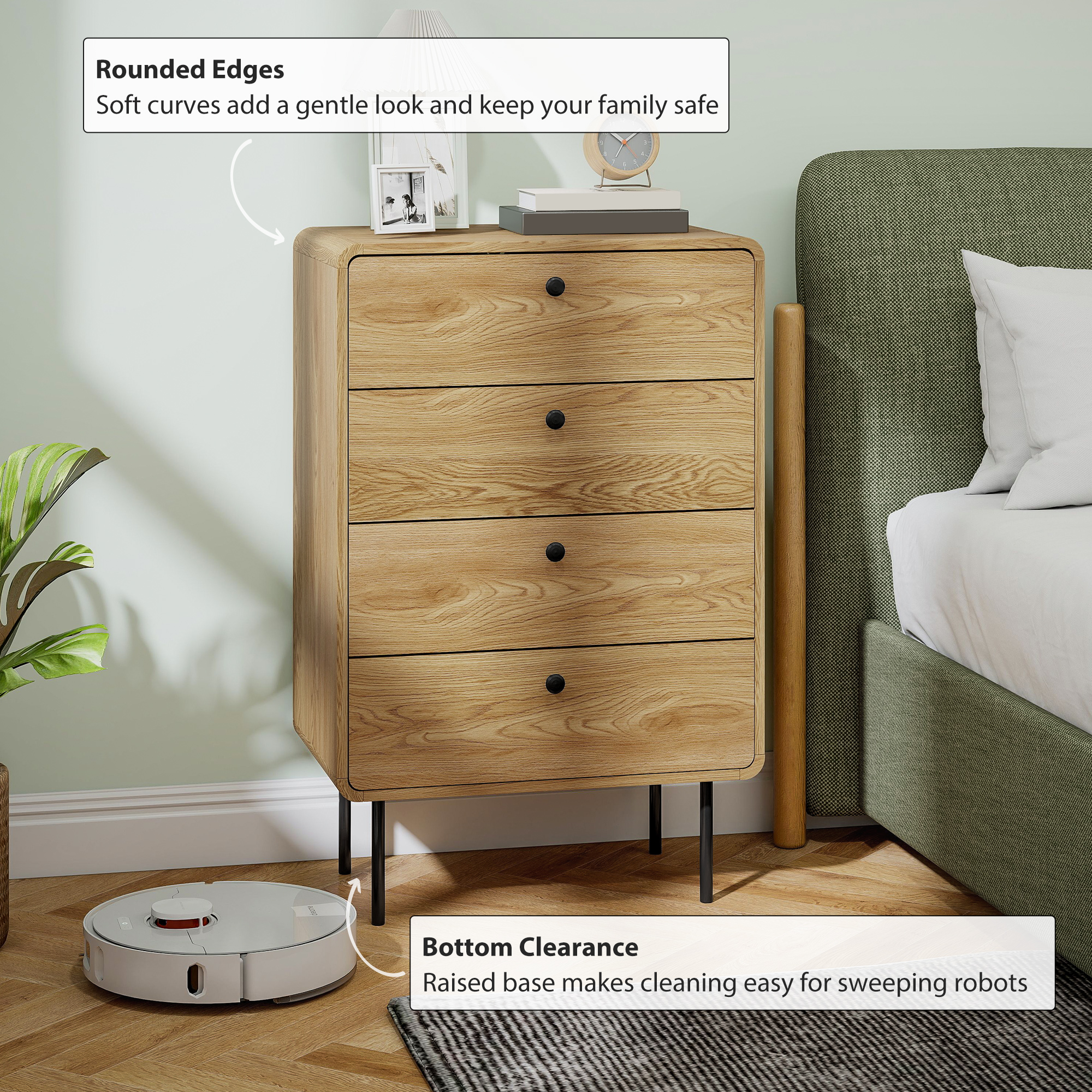 Struggling with morning clutter and the anxiety of sharp furniture edges around your family? Transform your space with the HOMCOM chest of drawers. Its four spacious drawers bring order to chaos for peaceful mornings. The modern rounded design and smooth handles not only elevate your style but also create a safer space, offering reassurance for your busy, happy household.