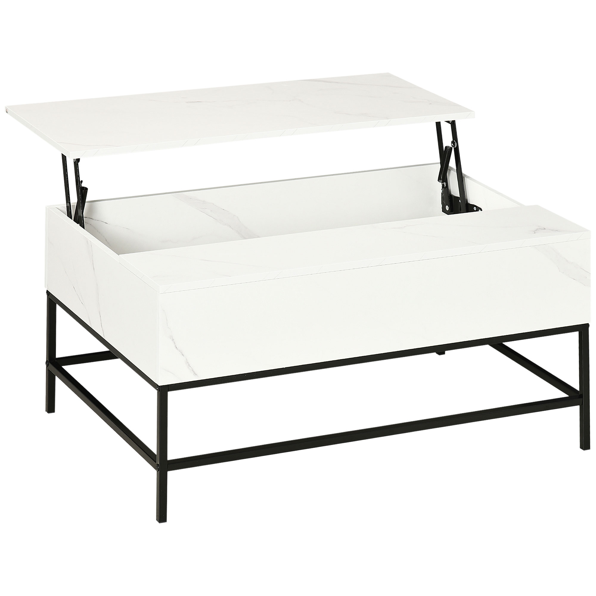 A modern and functional piece for the living room, thanks to this HOMCOM lift-top coffee table. The extending tabletop lifts up to create a convenient floating desk; simultaneously revealing a hidden storage compartment below: work on it and keep your space tidy. A metal frame means a strong structure, with a durable MDF body: perfect for everyday use.