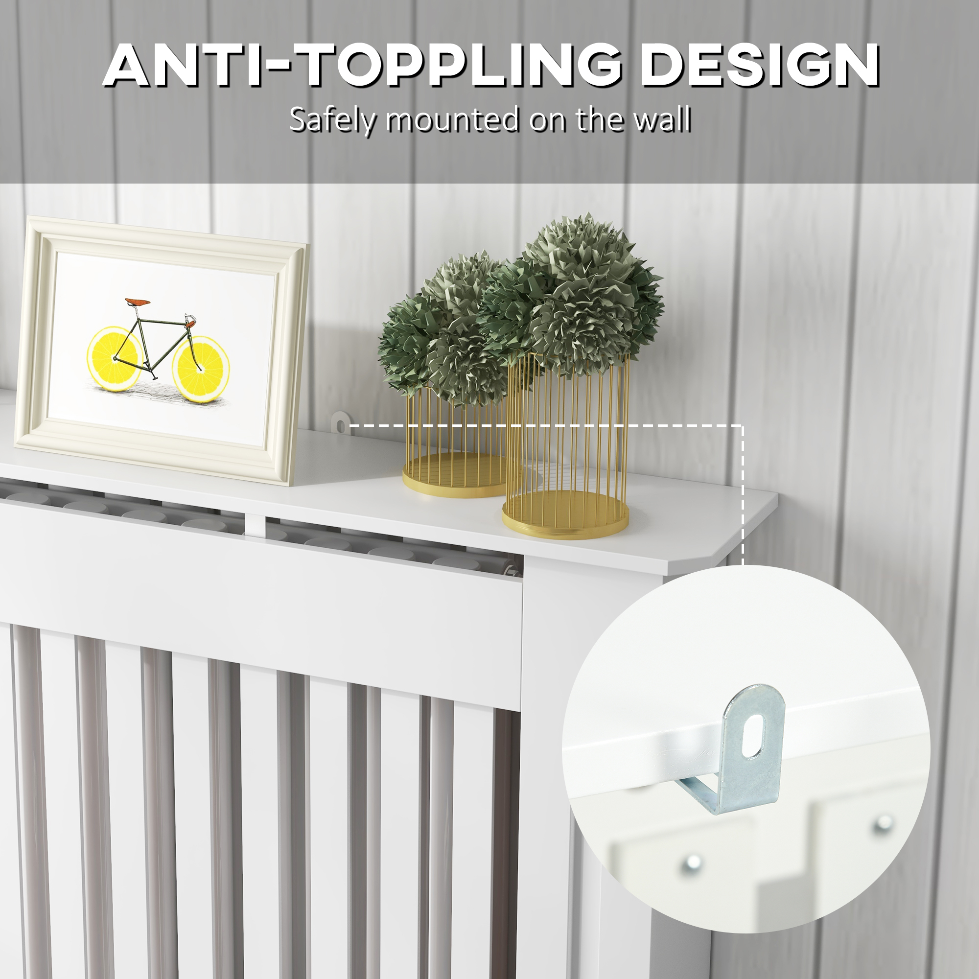 This radiator cover from HOMCOM is a practical addition to any home, covering your unsightly radiators and give a modern feel and look with the ability to place items of decorations on top. Made from MDF board with excellent craftsmanship in natural wood colour, it is designed to perfectly blend into most home decors. The front slatted design ensures that radiator heat efficiently and helps prevent children or pets from accidental contact with hot radiator surface.