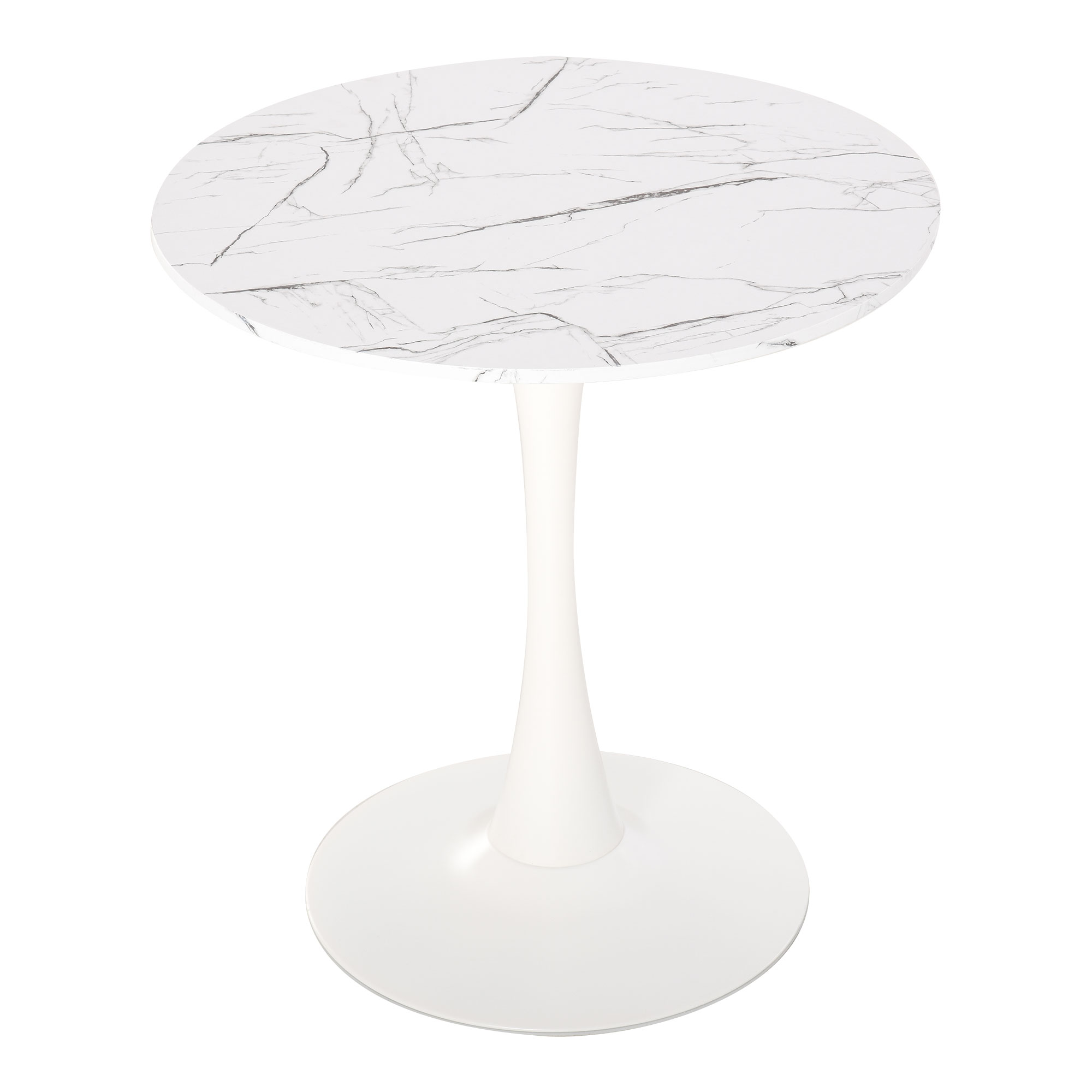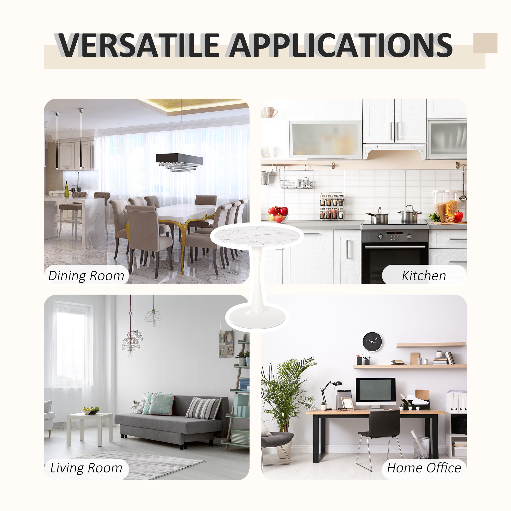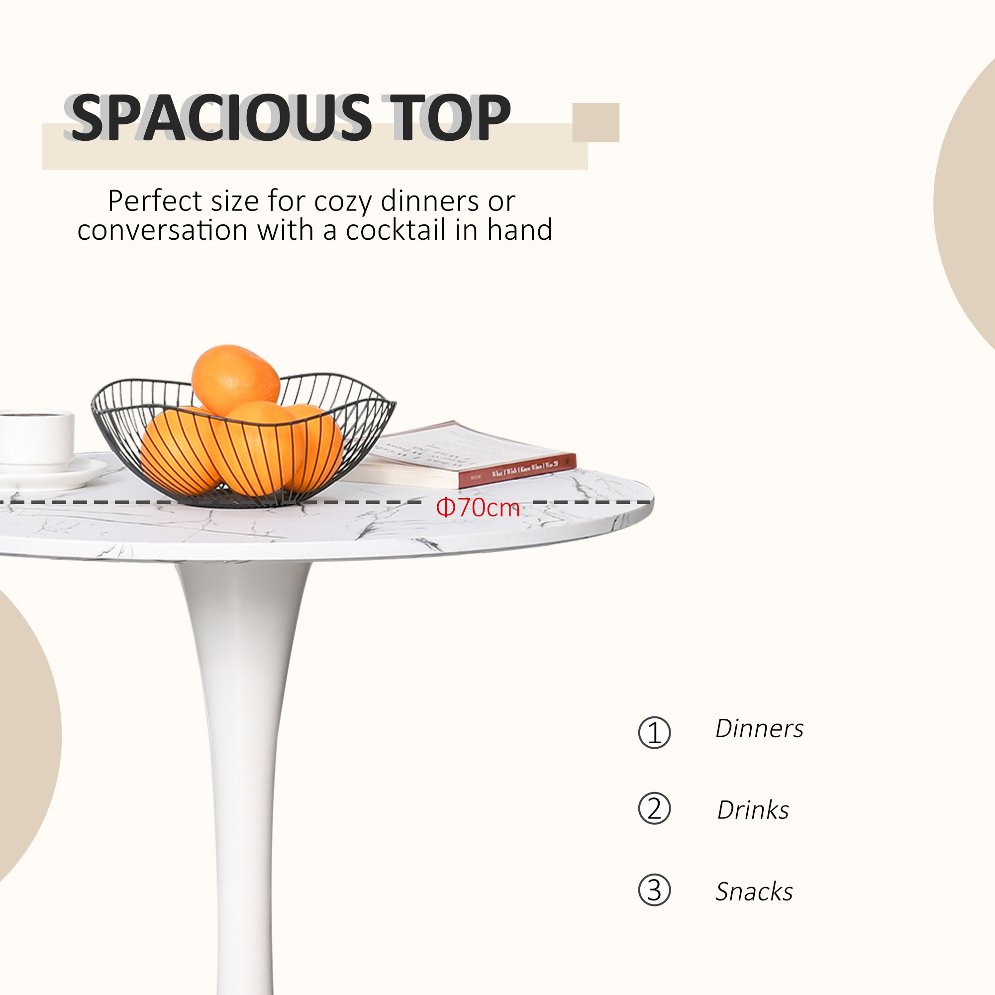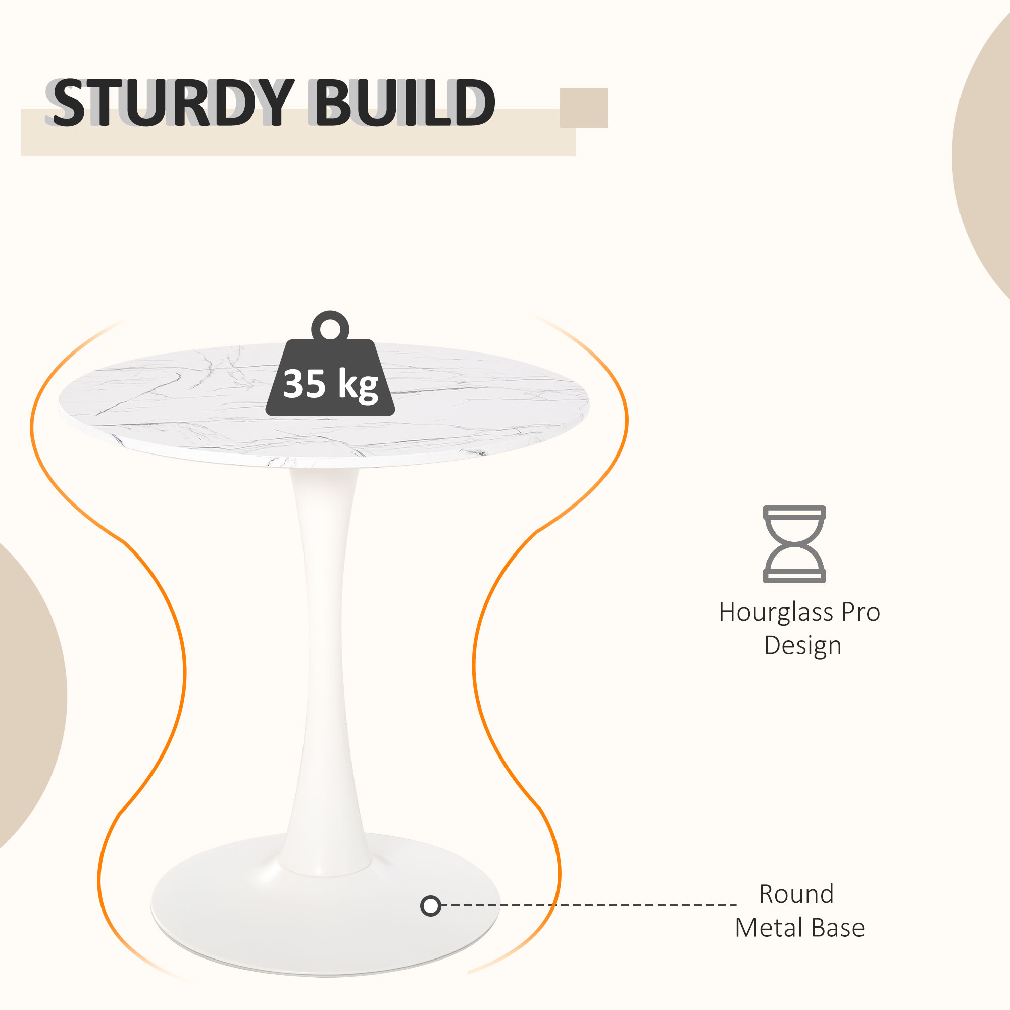 Bring upmarket bar vibes into the home with this dining table from HOMCOM. The frame, made from metal for a strong base, is crafted into a smoothly curved hourglass shape, giving it a beautiful look and feel. A large round table top is fitted on the frame, giving you a safe and reliable holding place for glasses, plates and more. Covered in a marble effect finish for a unique look which complements almost any interior, it's finished with a round base to promote balance and a bottom pad to protect the floor.