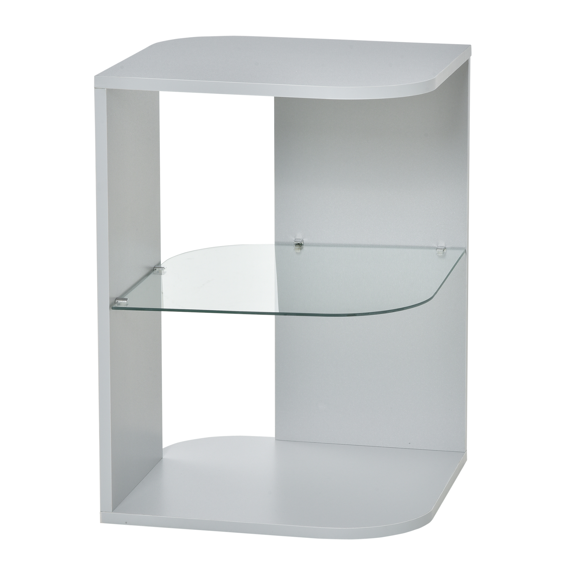 Curved, simple sophistication for the home and office starts here. This corner table, from HOMCOM is a perfect way to update your space whilst keeping it tidy. Made from MDF for durability, it's fitted with a middle glass shelf for three storage levels. Corner design means it can fit in even those awkward spaces. How about using it for a nightstand? Your modern home starts here.