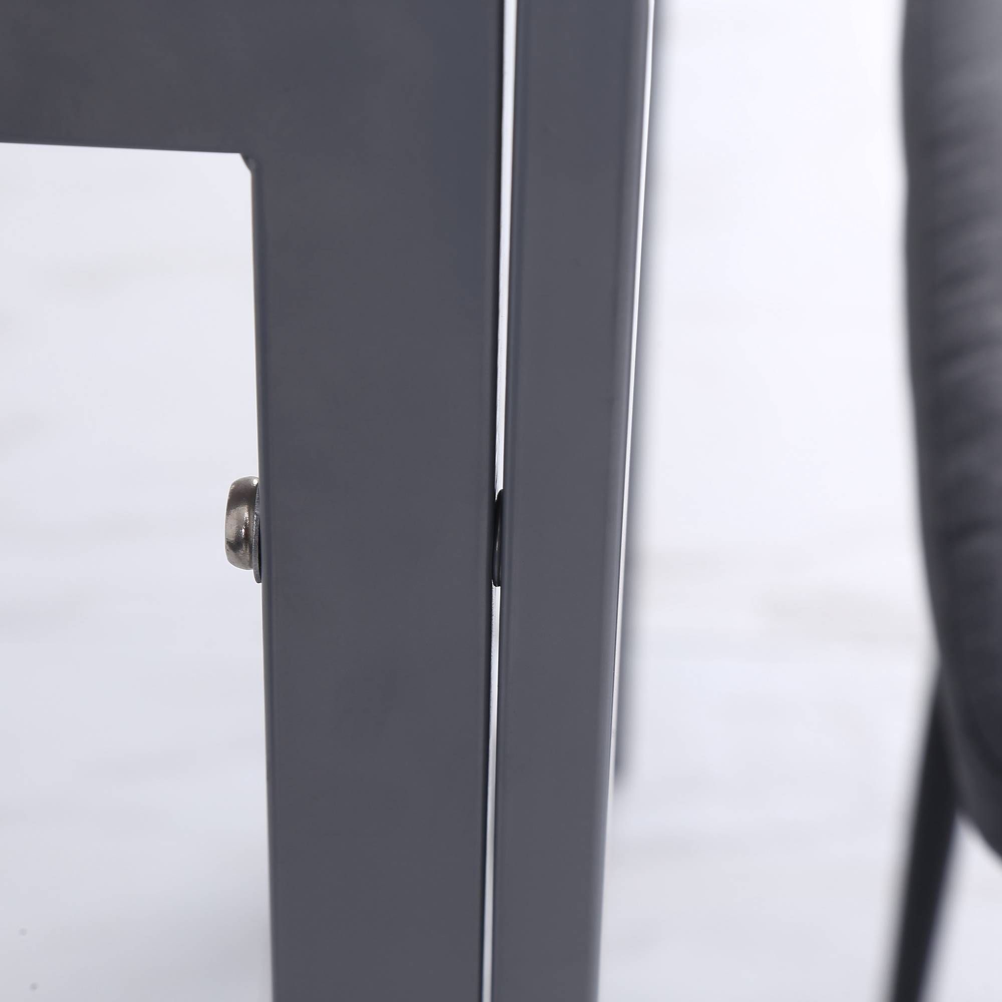 A touch of contemporary for your morning and evening meal times, thanks to this dining table for 2-4 people from HOMCOM. It's fitted with a 6mm tempered glass top for a sleek look, whist ensuring you've got a solid spot to dine and drink from. Compact size to sit by yourself or with a friend. Made from strong powder coated steel, the frame is tough and sturdy, with the square-shaped legs helping to keep it stable.