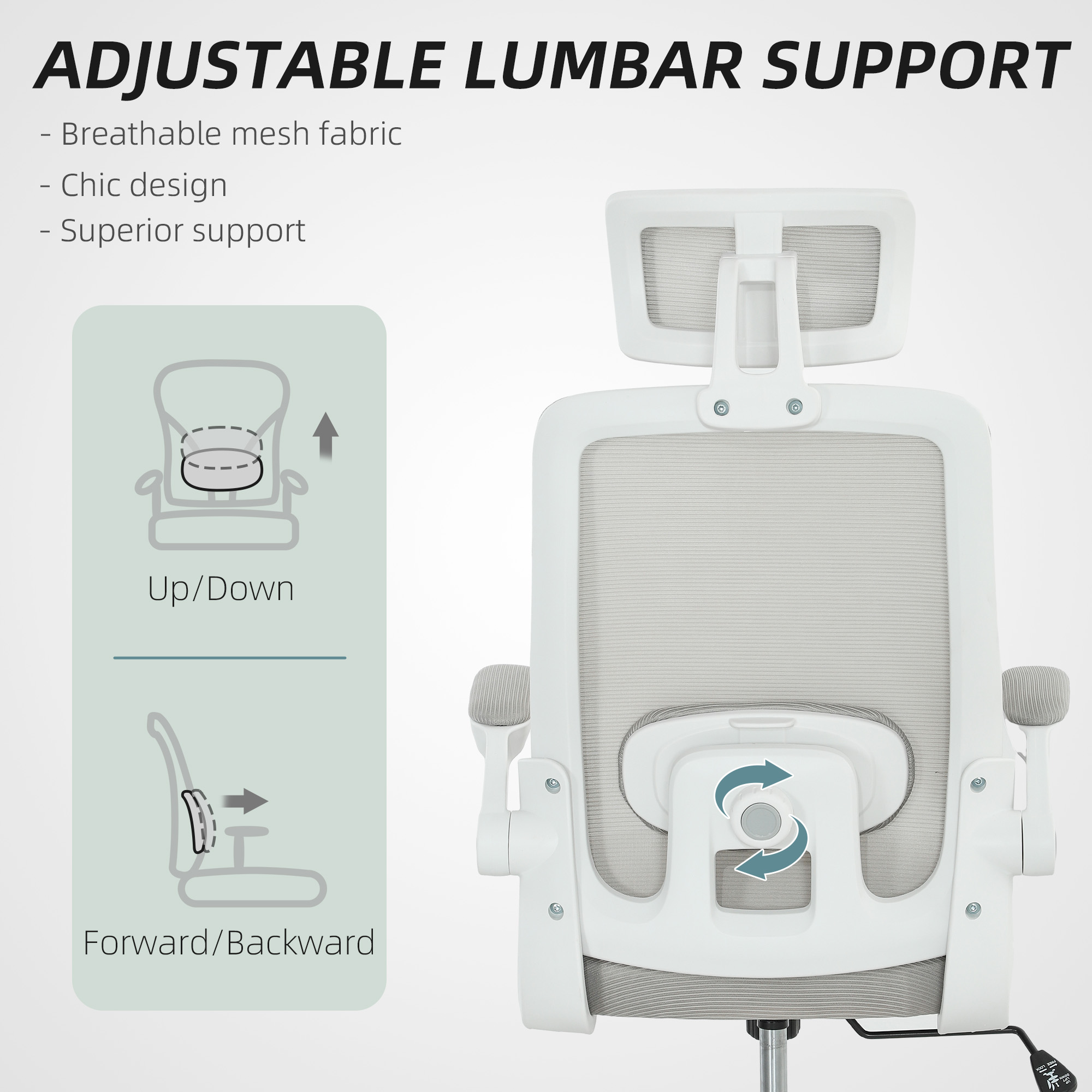 This HOMCOM office chair is a must-have addition to the home office setup. Enjoy customisable support with a headrest, the adjustable seat height and lumbar support - set it to your preferred position. The seat is filled with high-density foam for comfort, with a mesh covered back to keep it aerated all afternoon through. Complete with five wheels to move around easily, whenever you want.