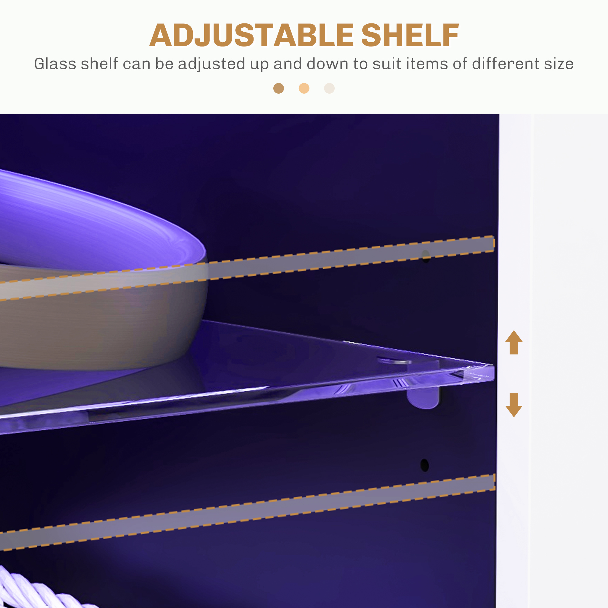 Your TV media unit, your way. This HOMCOM cabinet comes fitted with LED light strips: 12 colourways with four different modes - flash, strobe, fade, smooth - to set the ambience up how you want. Made from durable particle board to be used everyday, this TV cabinet is suitable for everyday use, and comes with four inner shelves and two outer compartments to allow plenty of storage and display.