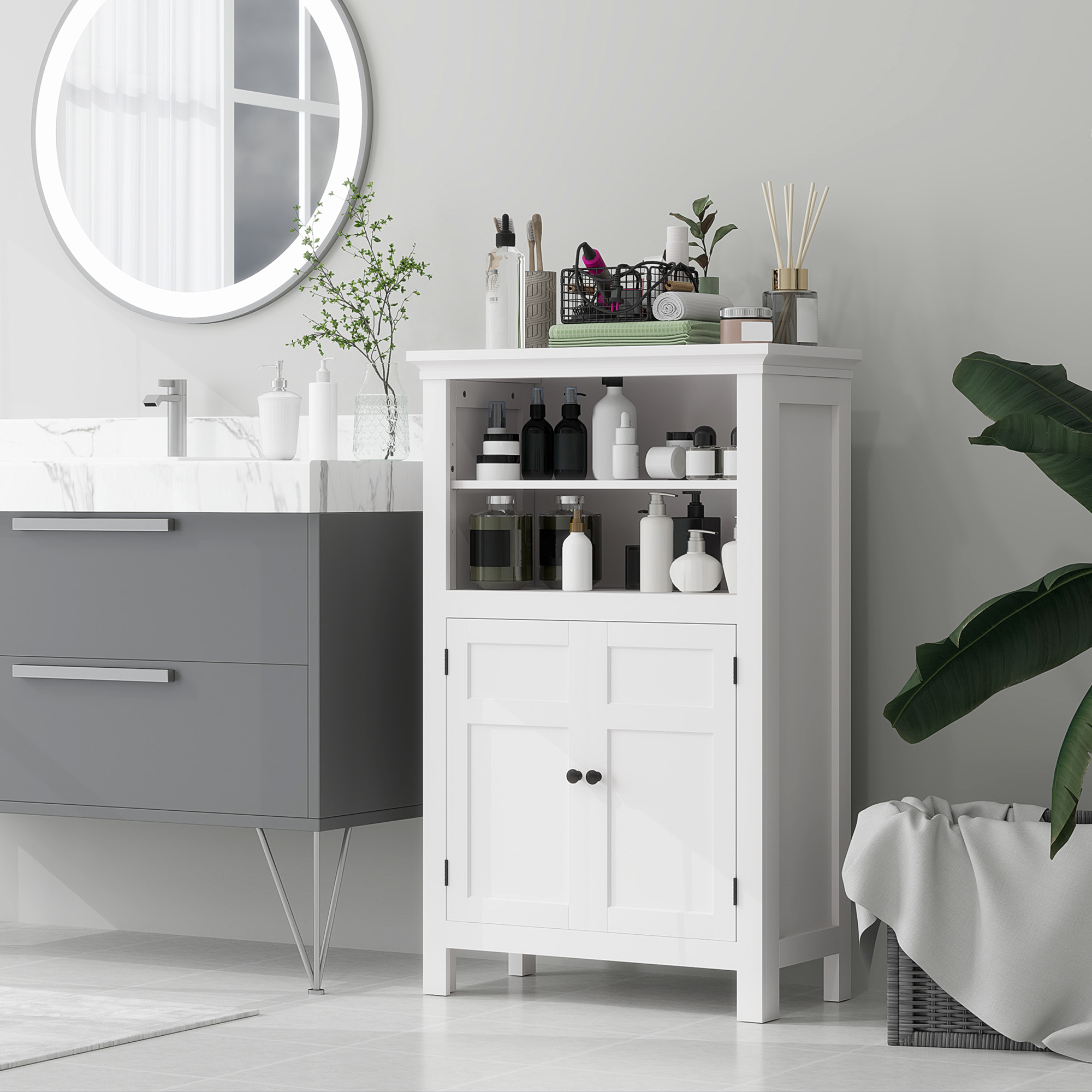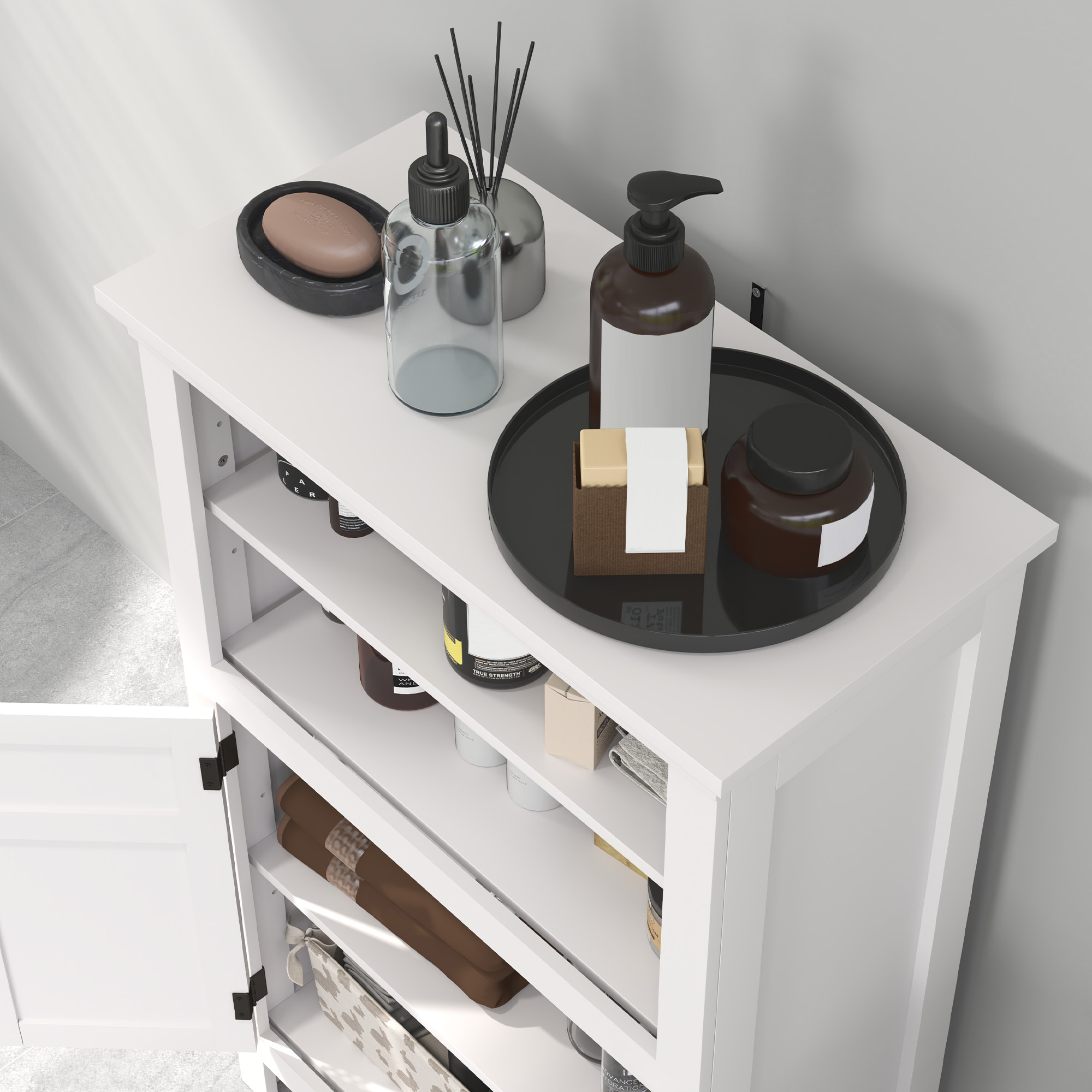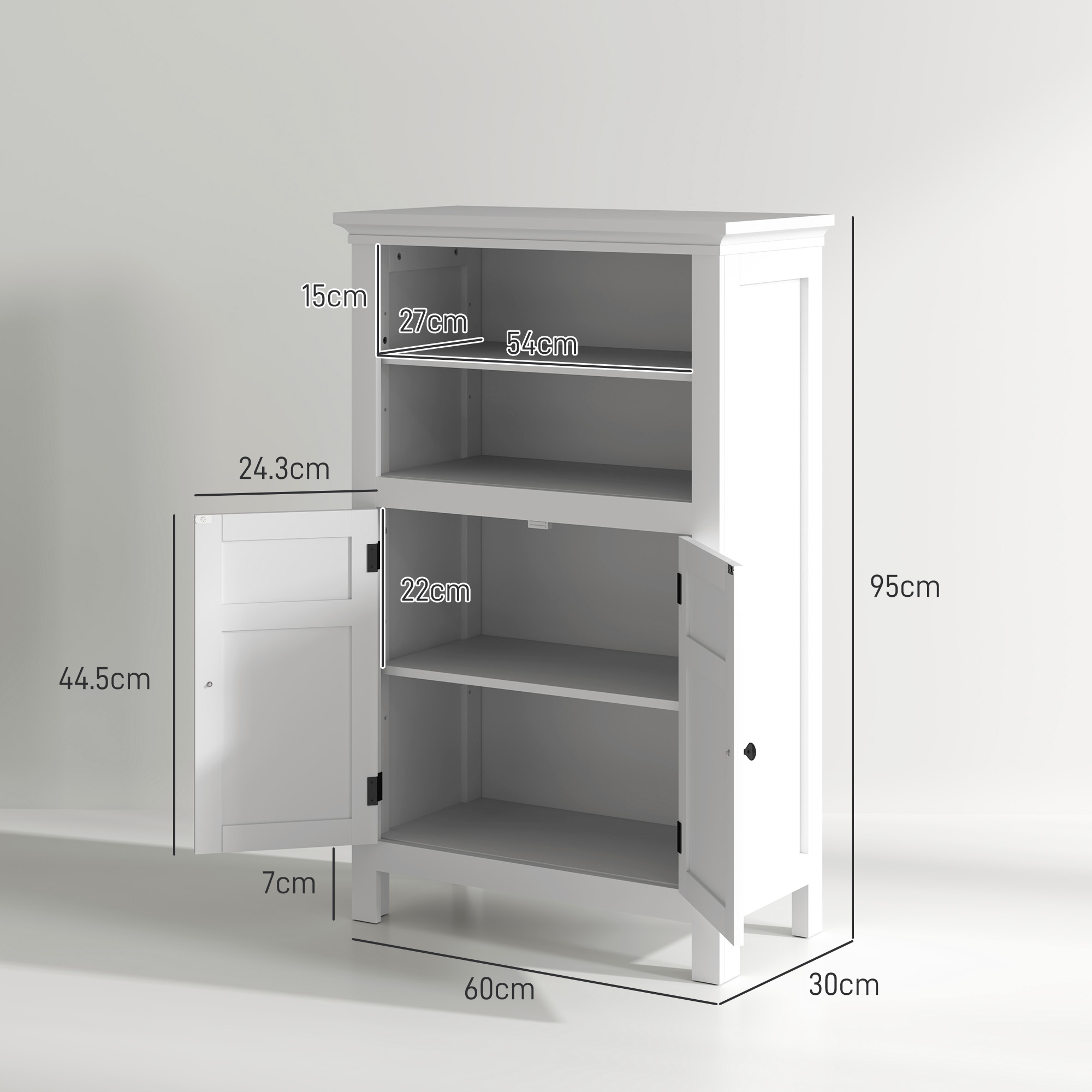 Even small spaces need an extra helping hand, so give yours plenty with this HOMCOM freestanding cabinet. Formed from MDF, this small bathroom storage cabinet is a solid piece suitable for everyday use. Comes with two top shelves and a bottom cupboard - enough room for all the essentials; complete with adjustable shelves for more personalised storage. The anti-tipping straps to attach to the wall for safety.
