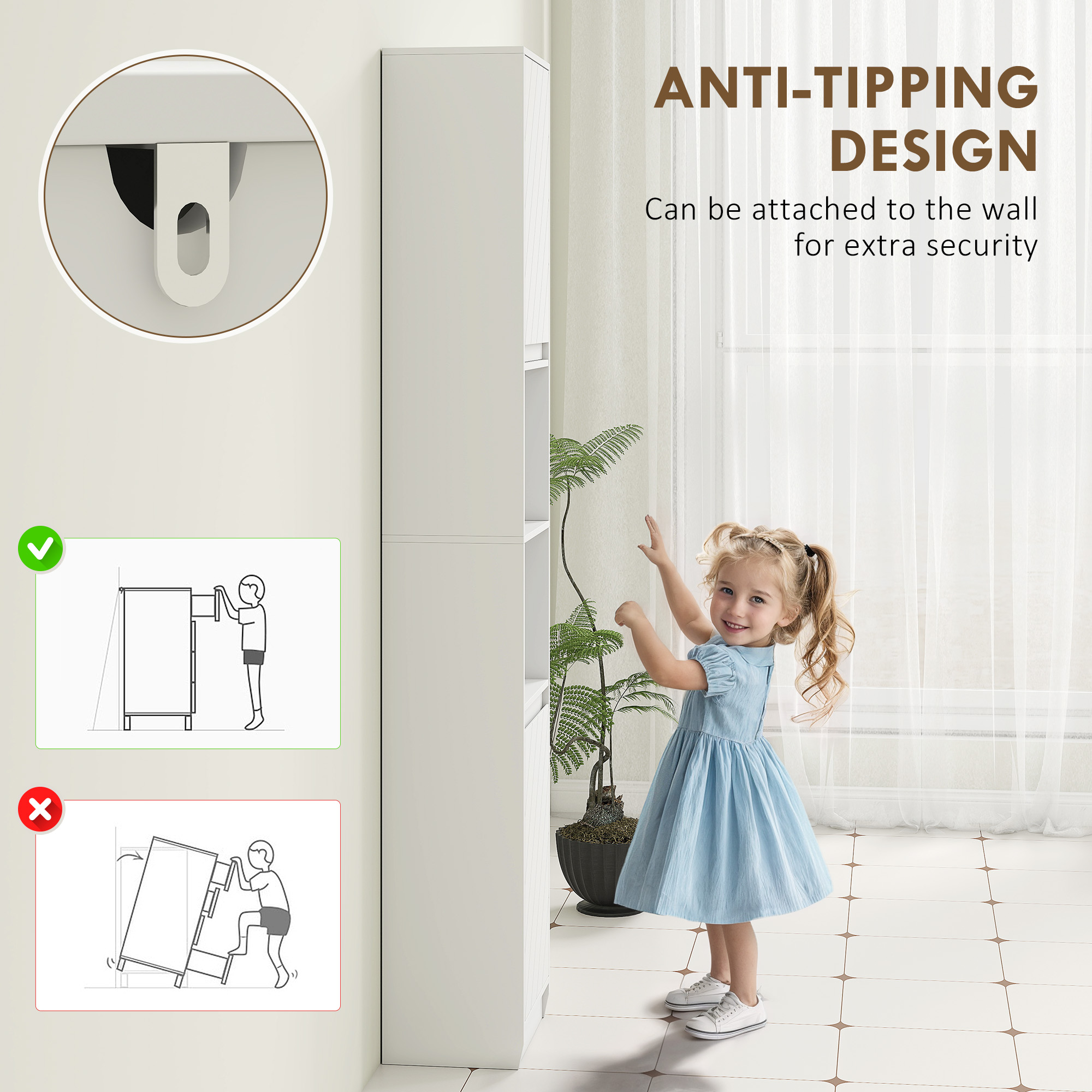 - Anti-tipping straps enhance safety for family-friendly use